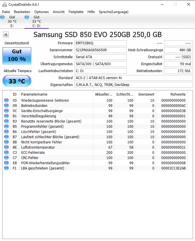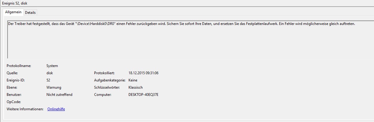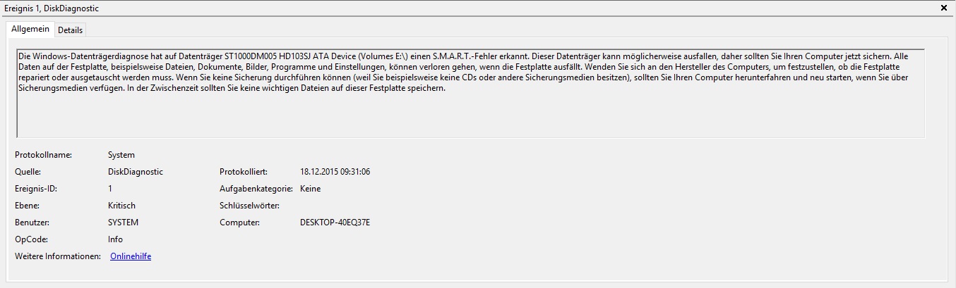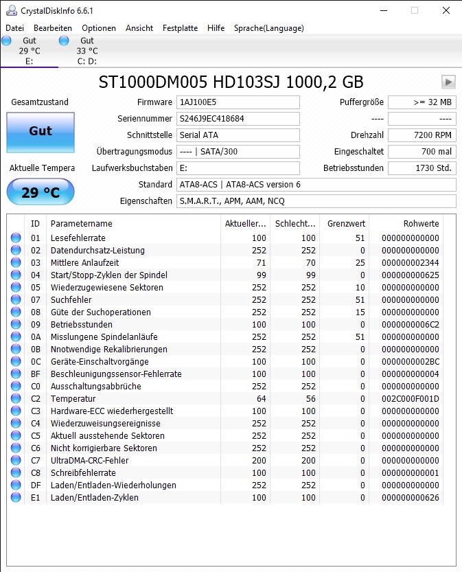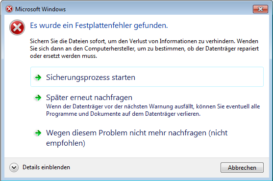 Mein PC läuft eigentlich super und macht keine Probleme, aber ab und zu springt ein Fenster auf mit der Meldung "Es wurde ein Festplattenfehler gefunden". Da ich die SSD erst vor etwa einem Monat gekauft habe, vermute ich, dass ein Produktionsfehler vorliegen könnte. Crystal Disk Info zeigt aber zwei "gute" Festplatten an, weshalb es mittlerweile sehr verlockend ist, die Option "Wegen diesem Problem nicht mehr nachfragen (nicht empfohlen)" zu wählen. Trotzdem wollte ich davor nochmal hier nachfragen, um sicher zu gehen.
