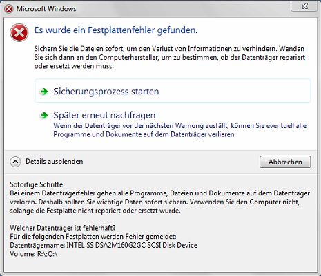 Muss ich mir Sorgen um die Platte machen? Eine Datensicherung ist jedenfalls erfolgt.