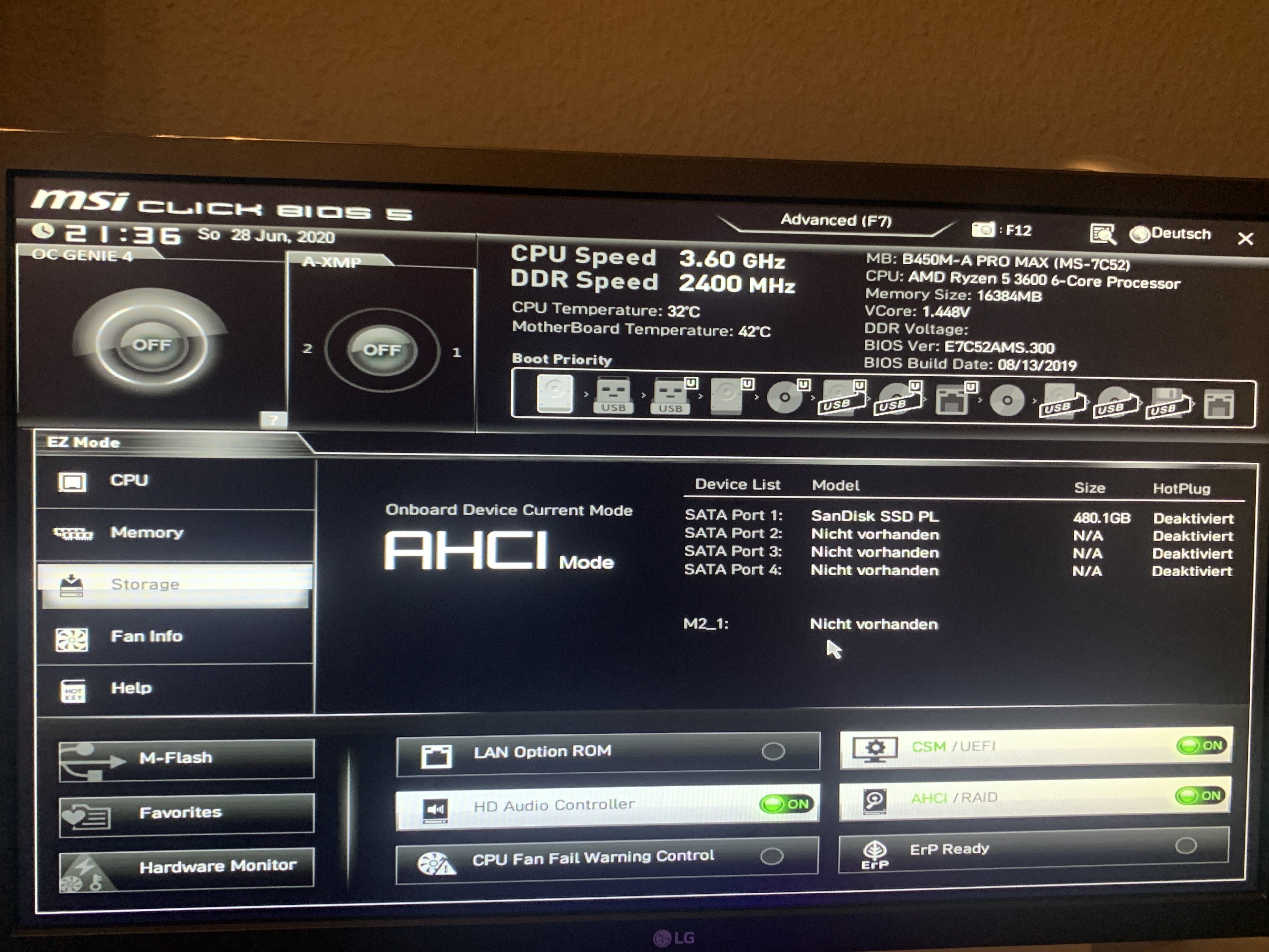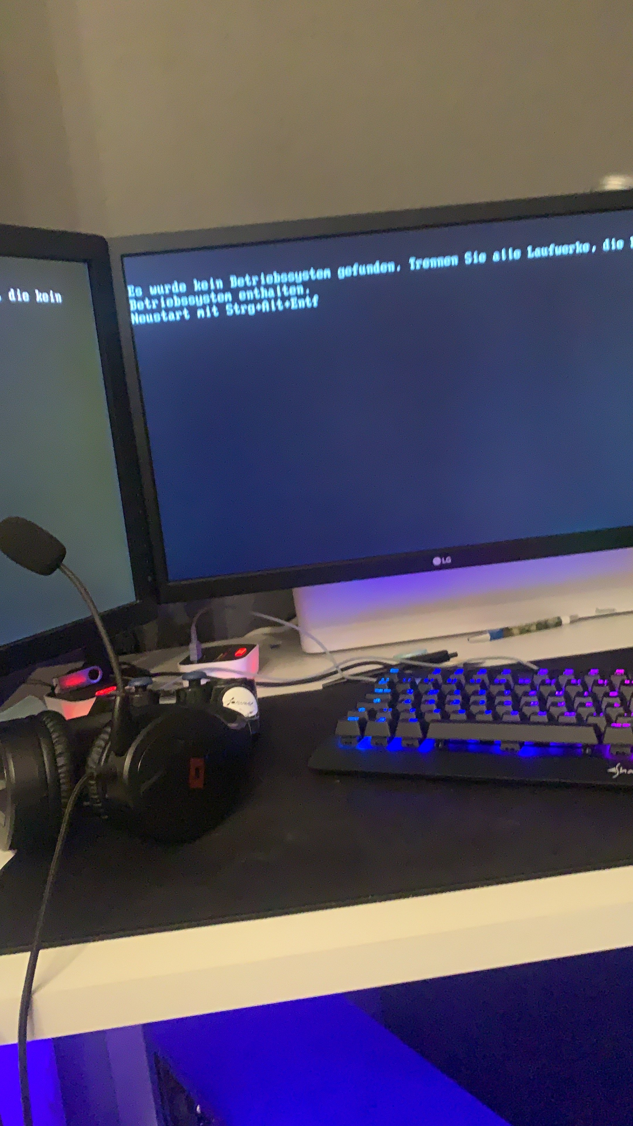 ich natürlich erstmal geschockt, mach Neustart und gehe ins bios, im Bios werden meine 2 SSDs und die HDD erkannt und sind in der richtigrn boot reihenfolge. Ich starte den PC wieder, nur mit der SSD wo Windows drauf ist. Und noch immer die Nachricht.