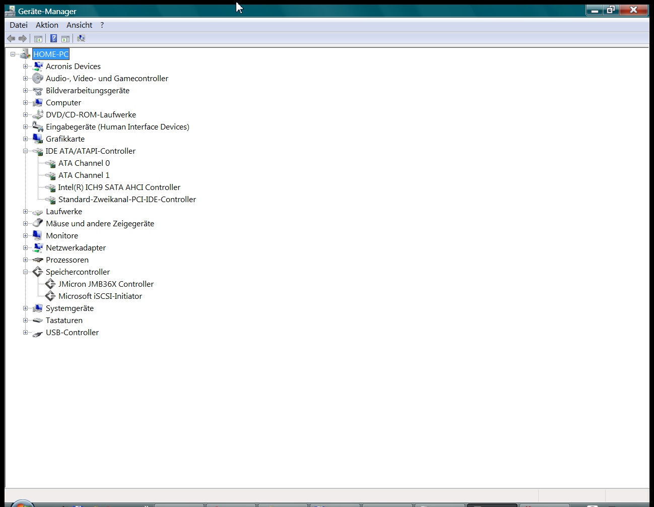 Was mich etwas wundert, dass im Gerätemanager (s. Bild) ein Standard-Zweikanal-PCI-IDE-Controller auftaucht. Unter Speichercontroller ist wiederum ein JMicron-Controller zu finden (s. Bild).
