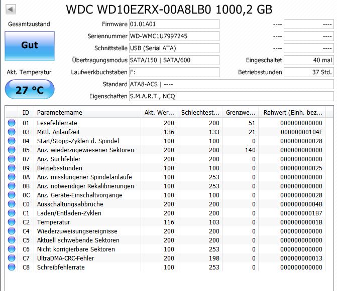 nach etwas warten taucht sie auf dem arbeitsplatz auf, aber nur mit dem name lokaler datenträger. per usb kommt sie sofort in den arbeitsplatz und zeigt richtigen namen an.(sicherungsplatte).