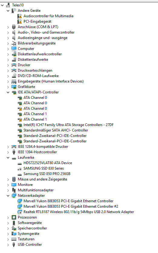 Und da hat selbst dein W7 mit zig gelben Ausrufezeichen seine Probleme = da ist Nacharbeit angesagt. Selbe in W10 (auch wenn hier evt. weniger Gelbes zu sehen ist), da ein WHQL-Treiber des Herstellers optimaler sein könnte als der von W10 "empfohlene" per Auto-Update-Treiber.