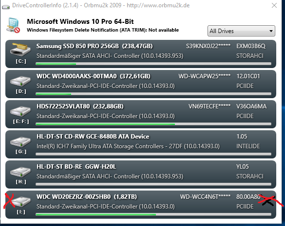 wenn ich das mache werden nur noch wenige Platten erkannt und im Gerätemanager unter SATA herrscht Chaos