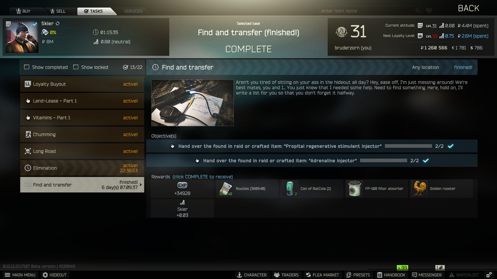 Meine Tarkov-Sucht hat in den vergangenen Wochen extrem nachgelassen. Die wichtigsten Händler habe ich auf Level 3 und Quests zu erledigen nervt(e) nur noch. Wobei ich doch noch auf der Suche nach einer einzigen fucking PM Pistole für Punisher Pt. 5 bin damit ich endlich 7.62x39 BP kaufen kann.