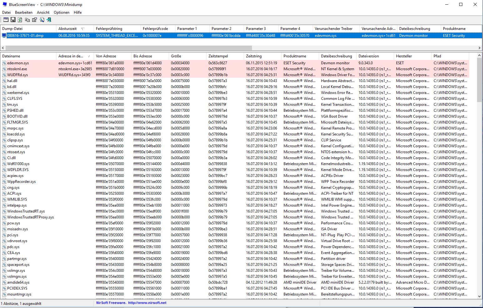 Herausgefunden nach mehreren vergeblichen Treiber-Updates, Systemprüfungen u.s.w. über auslesen des MiniDump-Files per BlueScreenView.