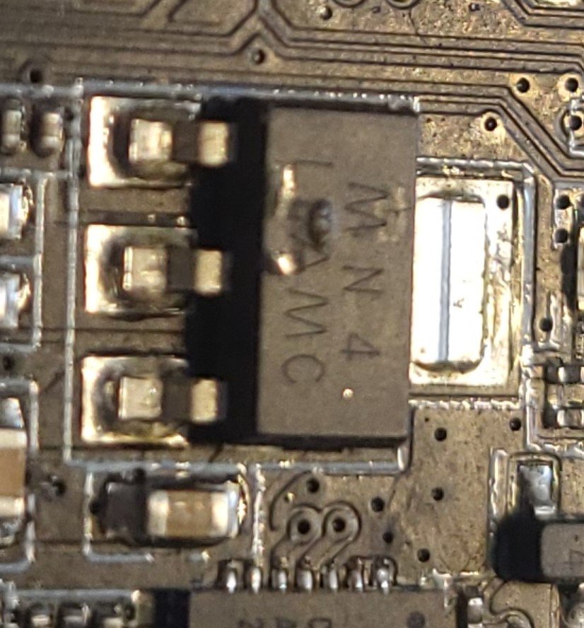 Vor kurzem ging mir dann aber doch der ESP hops. Der aufgelötetet Spannungsregler hat hier eine deutliche Ausbeulung.