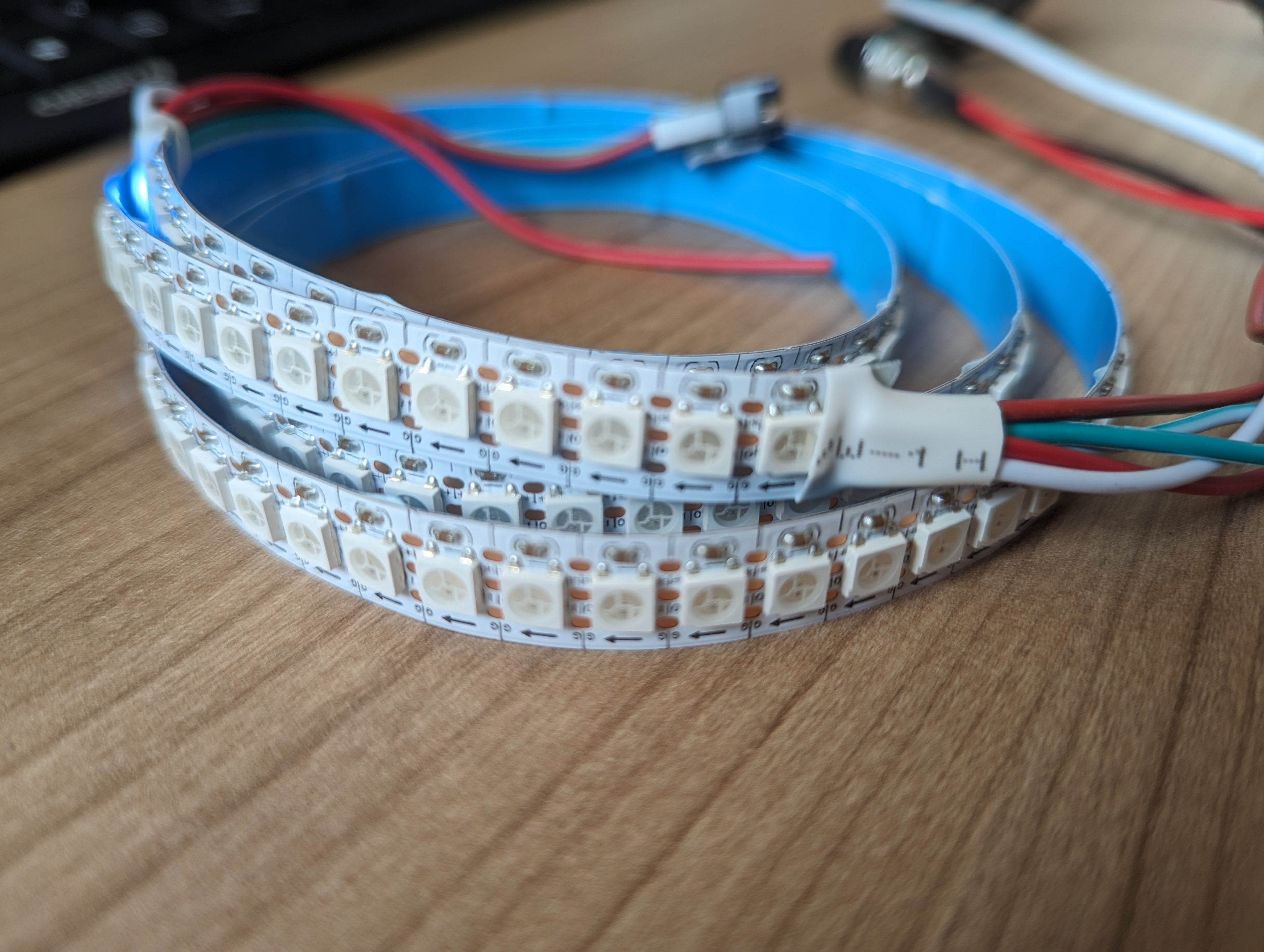 Dazu habe ich mir eine 1 Meter lange W281x LED-Leiste mit 144 LEDs gekauft, einen "ESP32-CH340C-TYPE C" und ein 5V 4A Ladegerät.