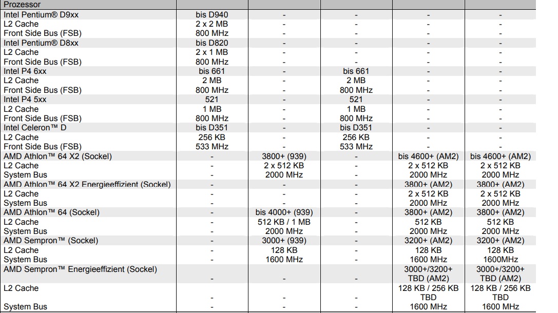 Zumindest die Prozessoren-Liste enthält NUR Prozessoren aus der Pentium 4/D-Ära. Allesamt reine Heizungen und deutlich langsamer als ein Core2Duo.
