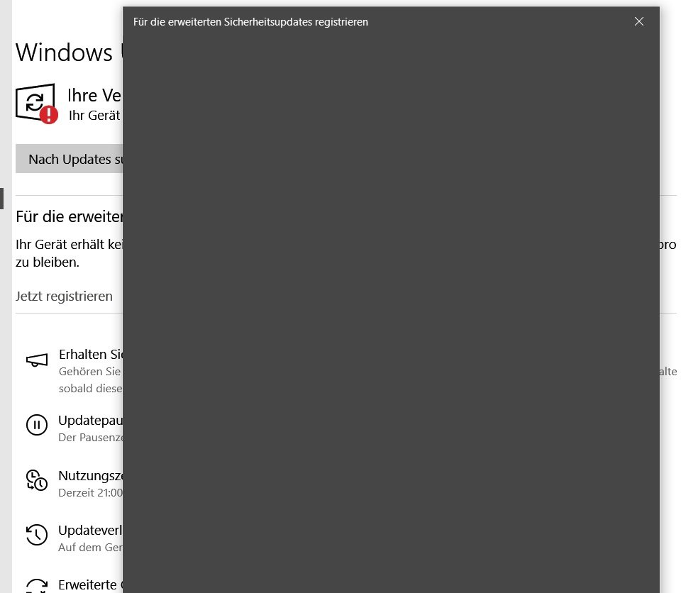 Endlich hätte ich die Möglichkeit, mich für die ESU zu registrieren, doch klicke ich auf den Button "Jetzt registrieren", erscheint zwar kurz ein neues leeres Fenster (siehe Bild), dieses verschwindet aber nach ein paar Sekunden wieder. Was ist los? Ich probierte es schon mehrmals. Das letzte Update wurde installiert, ich bin als Admin angemeldet, und die Version meines Betriebssystems ist Windows10 Home 22H2. Ich erfülle meines Wissens also sämtliche Anforderungen, um mich für die ESU anmelden zu können.
