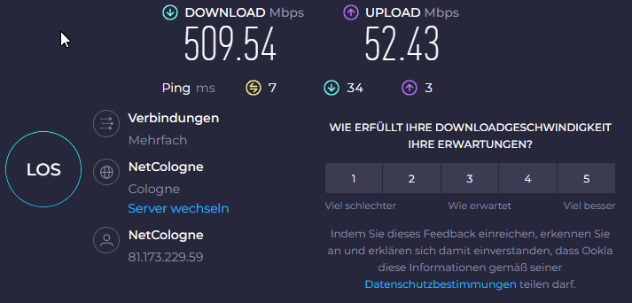 Da ich aber oft größere Daten aus dem Netzwerk kopieren oder aus dem Internet, muss ich mein Laptop, was im Schlafzimmer steht, immer mit in den Wohnzimmer direkt an Lan anschließen. Auf Dauer ist mir das etwas lästig und aus diesem Grund möchte ich auch eine GBit/s Anschluss im Schlafzimmer haben.