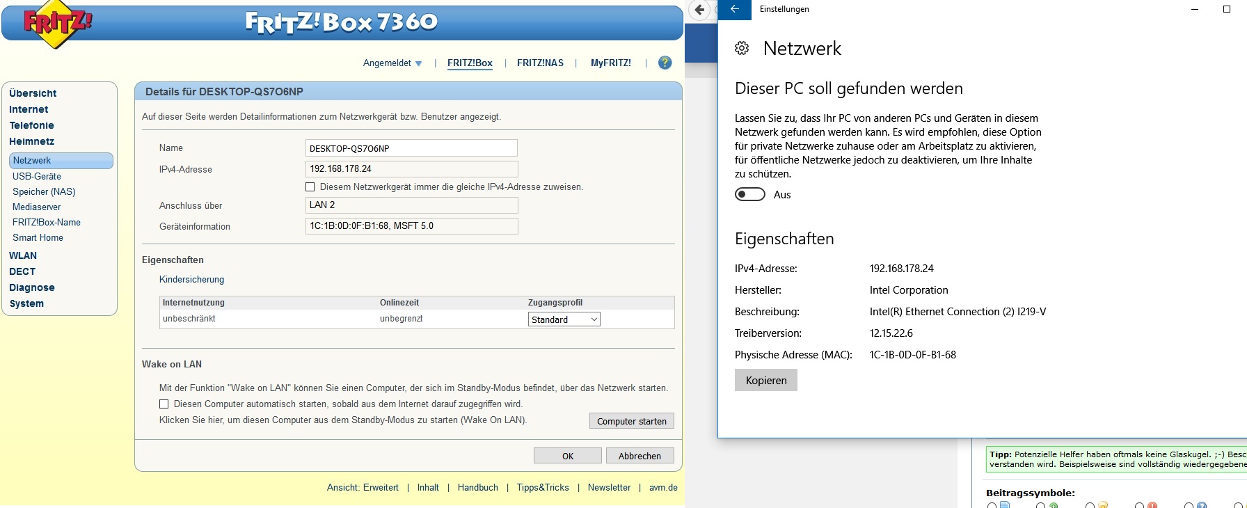 Router: Fritzbox 7360