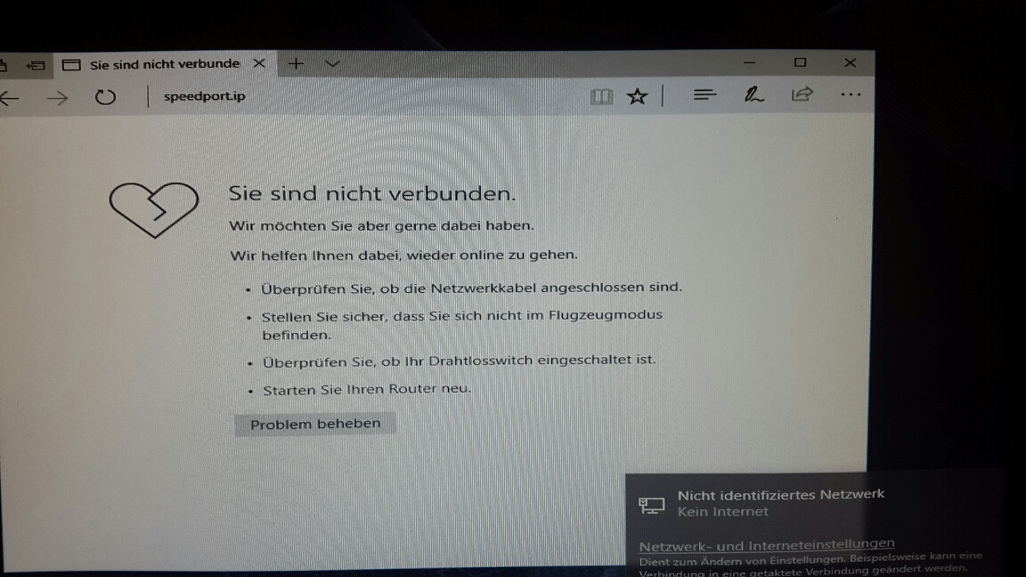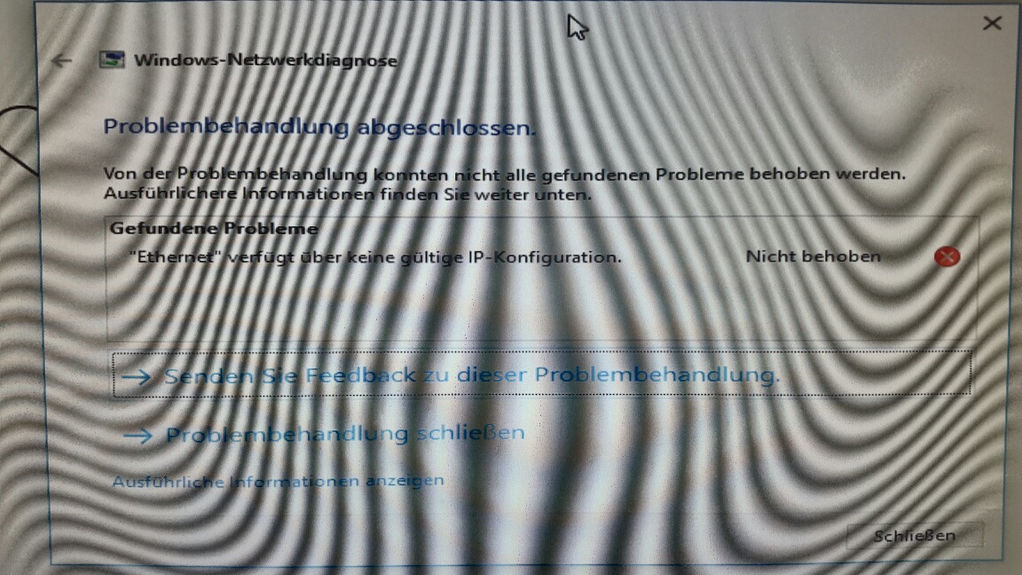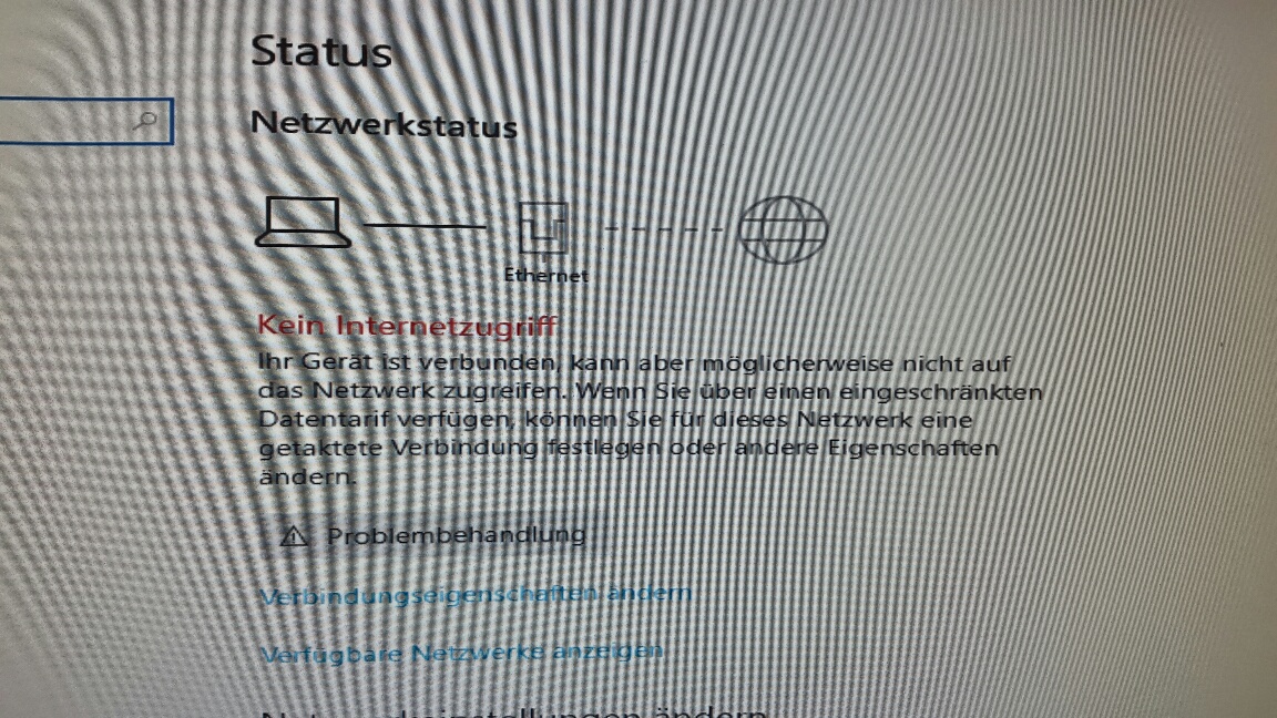 Es kommt die Fehlermeldung: Ethernet verfügt über keine gültige IP Konfiguration