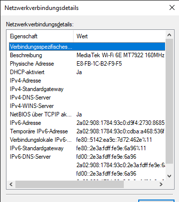 Bei mir ist schon alles auf automatisch.omavoss schrieb:Ich alter Mann öffne in solchen Fällen die alte Systemsteuerung, Netzwerk- und Freigabecenter, Adaptereinstellungen ändern, die WLAN-Verbindung auswählen, Status auswählen, Eigenschaften, Internetprotokoll, Version 4 (TCP/IPv4) auswählen, Eigenschaften, dort alles auf automatisch beziehen einstellen, OK, dann den Rechner neu starten. Hinterher kann man alles wieder auf statische IP-Adresse und DNS (falls Pihole im Spiel ist) umstellen.