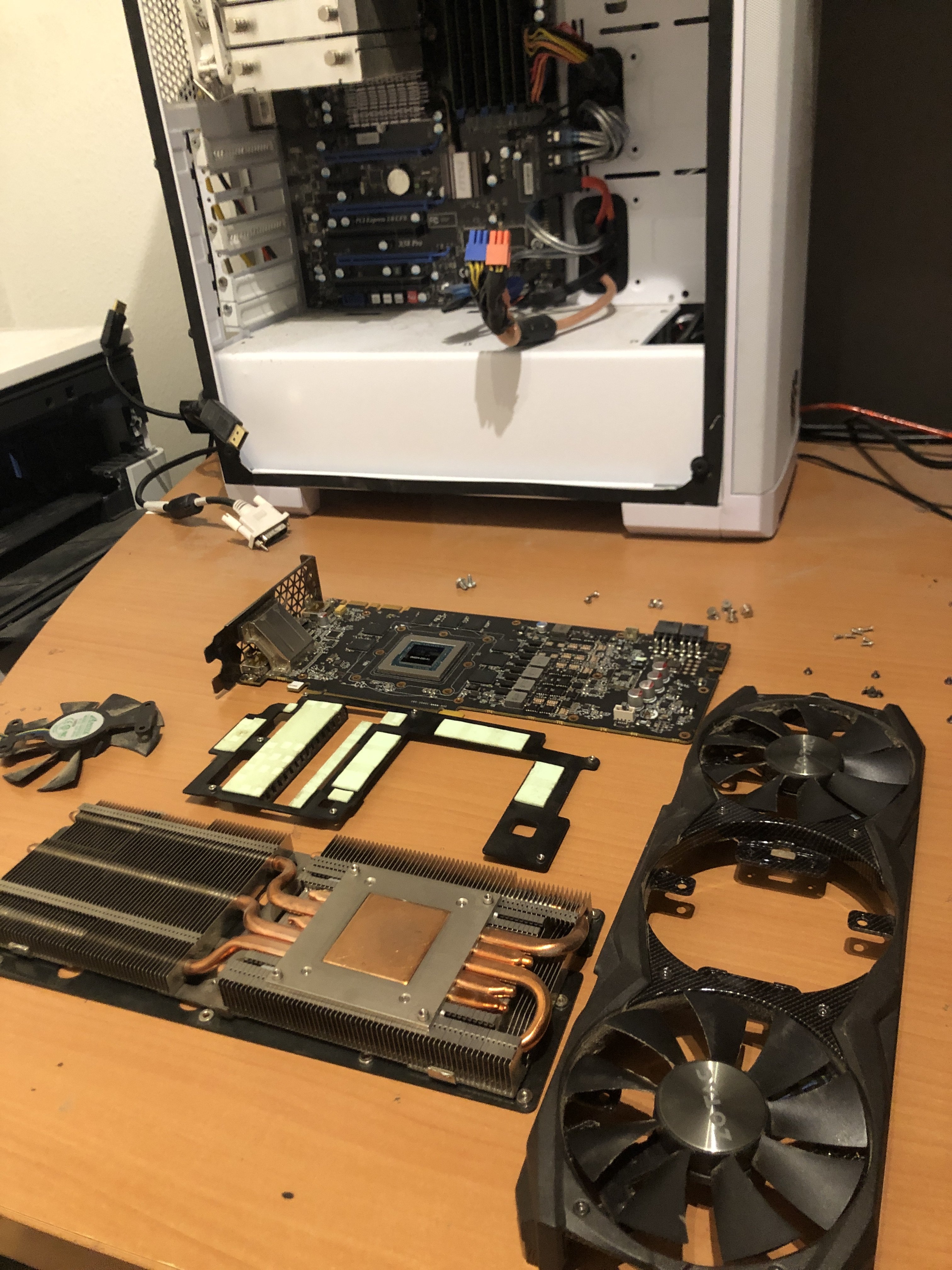 ich habe den mittleren Lüfter meiner Zotak Extreme Amp 970er Geforce kaputt gemacht, einer der Rotorblätter ist weggebrochen, nun habe ich den Apistek Model GA91S2H 12 V, 0,35 A in 95mm nachbestellt, kommt in nem Monat erst. Ich dachte halt schonmal Paste aufzutragen, nun bilde ich mir ein bessere Temps evtl. zu bekommen, wenn ich auf die vielen Quadrate wo die ganzen Chips draufliegen überall auch ein Kleks Paste drauftue. Ist das ne gute Idee, um noch besseren kontakt zu haben oder staut sich das dann eher und sollte es lieber so mit den Pads lassen ? Habe im Netz dazu nix gefunden, vielleicht hat jemand tips. Es sind halt voll viele pads... vielleicht eine kombination mit flüssigmetal (pads) oder so ? Dank im Voraus, Gruss Bobby