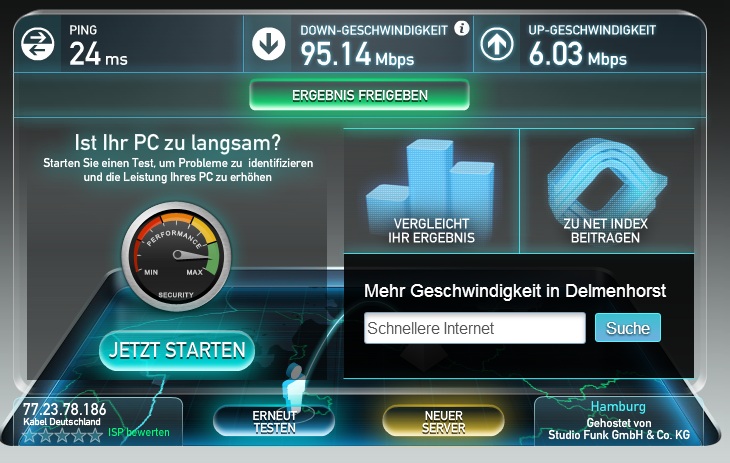 Vor allen Dingen schwankt sie, bei mir jedenfalls, sehr stark. Mal ist es so langsam, dass man kb hat zu surfen, mal aber auch schneller als die georderte Geschwindikeit. Im Endeffekt ist die Geschwindikeit aber immernoch weit unter der bestellten.