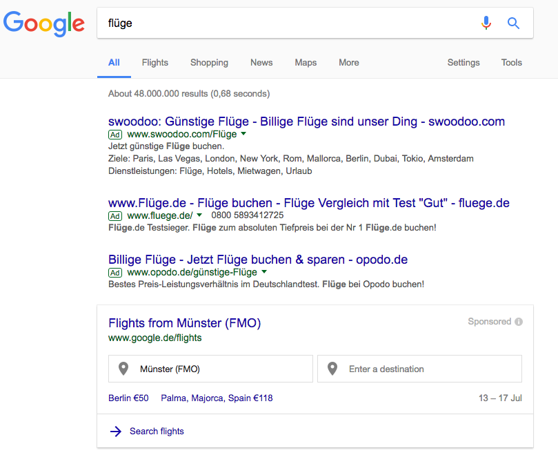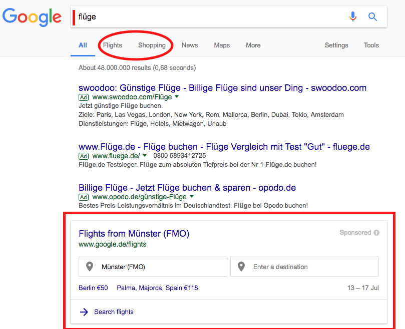 Einzig was Google da machen könnte wäre, dass sie die Google-Shopping Anzeigen in der Suche rausstreichen.