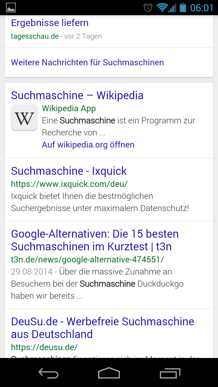Ich hab gerade wegerm Thread aufm Handy mal "Suchmaschine" eingegeben und erhalte mMn neutrale Treffer. Sprich, man kann sich für eine Suchmaschine entscheiden, wenn man den ersten Link anklickt oder so.
