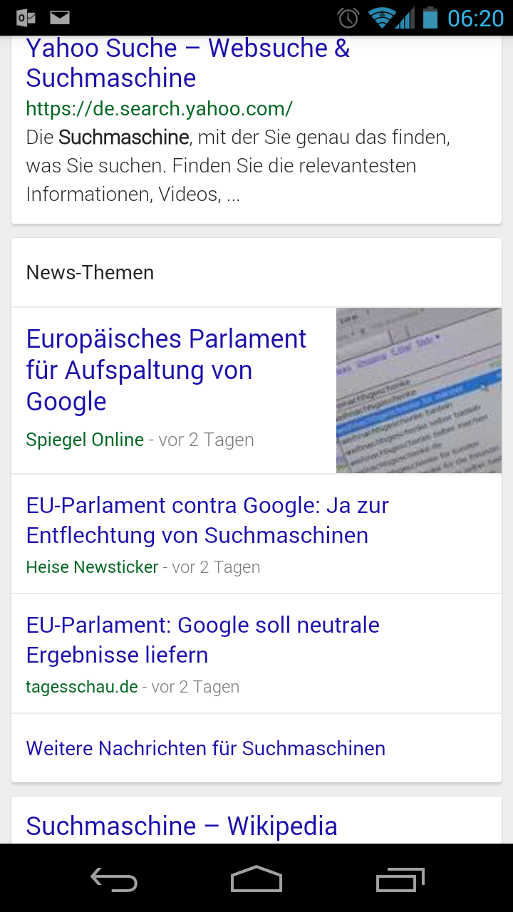 Macht yahoo-Suche sowas, drauf geschissen, weils eh keiner nutzt und somit keine Marktmacht hat. Da 95% google nutzen (ich auch, weil es die beste ist, was ich leider ab und an wieder teste, auch wenn es manchmal nur Müll findet), kommt da was komplett anderes zum Tragen.