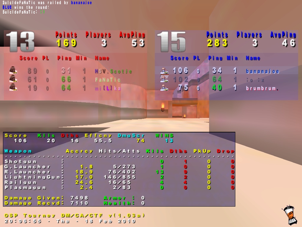 Q3A... Definitiv. War damals in den Ferien oft mit meiner Cousine bei den Großeltern/Onkel und mein Onkel hatte da immer 2 Rechner an denen wir am abend oder wenn schlechtes Wetter war Zocken durften.