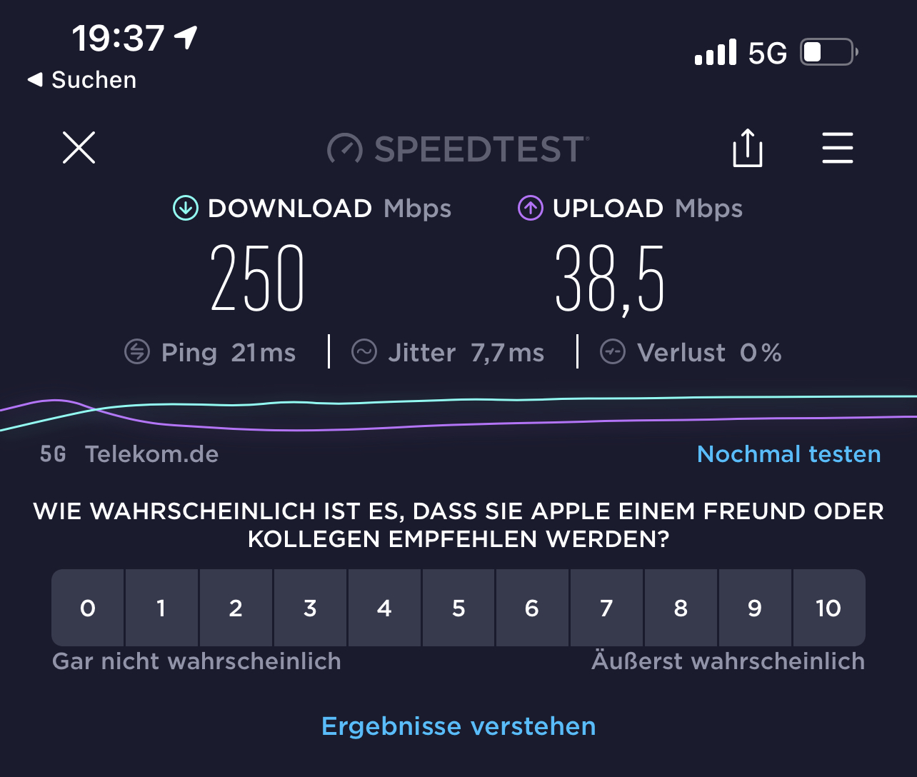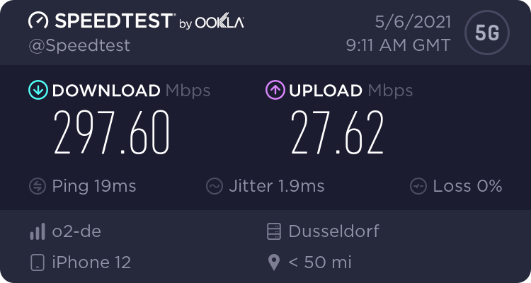 Jetzt wo das iPhone 12 und iPhone 12 Pro offiziell released wurde und diese Gen die erste iPhone Generation mit 5G ist, würde mich mal interessieren was für Speeds ihr so bisher mit 5G erreichen konntet!