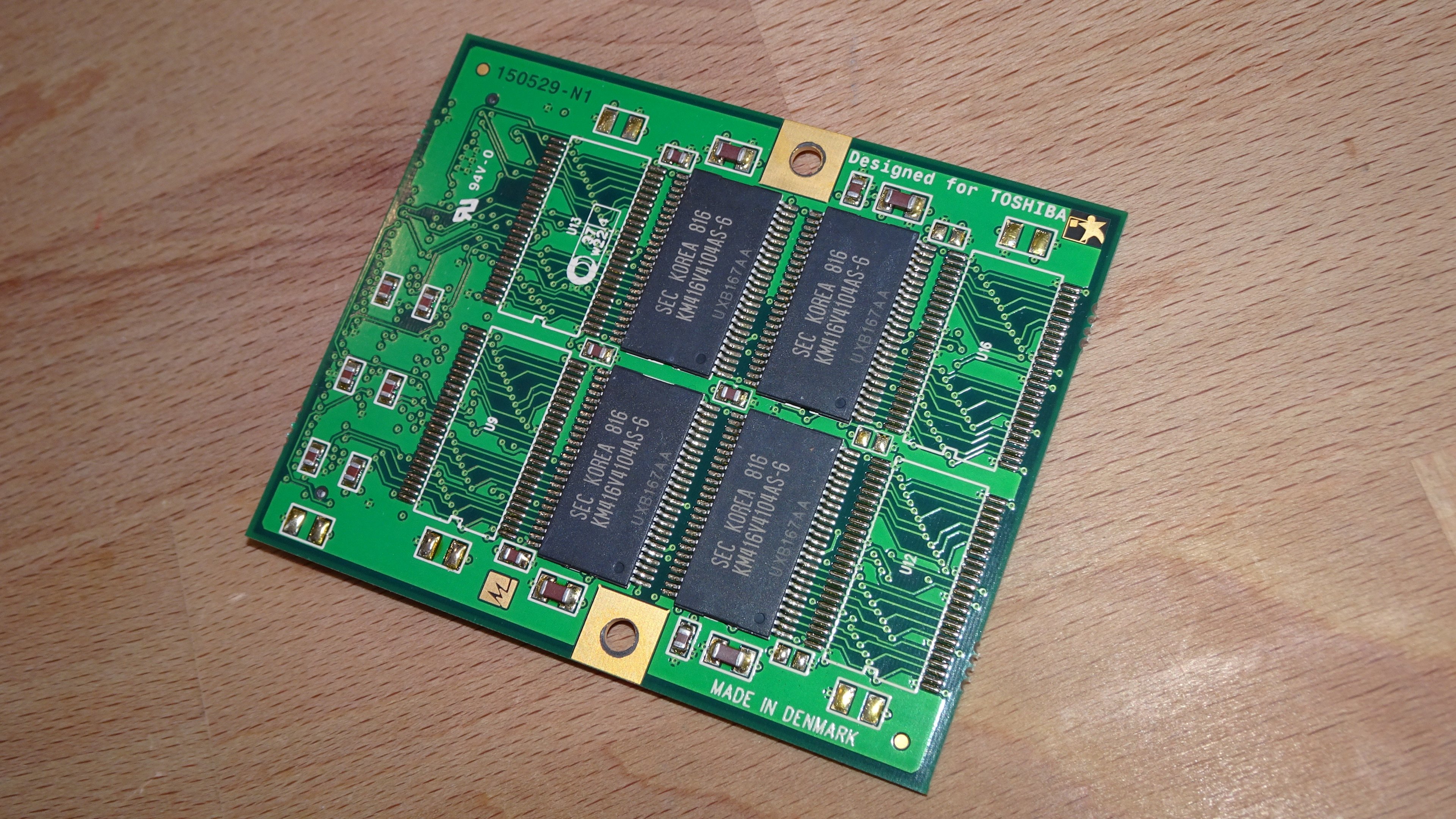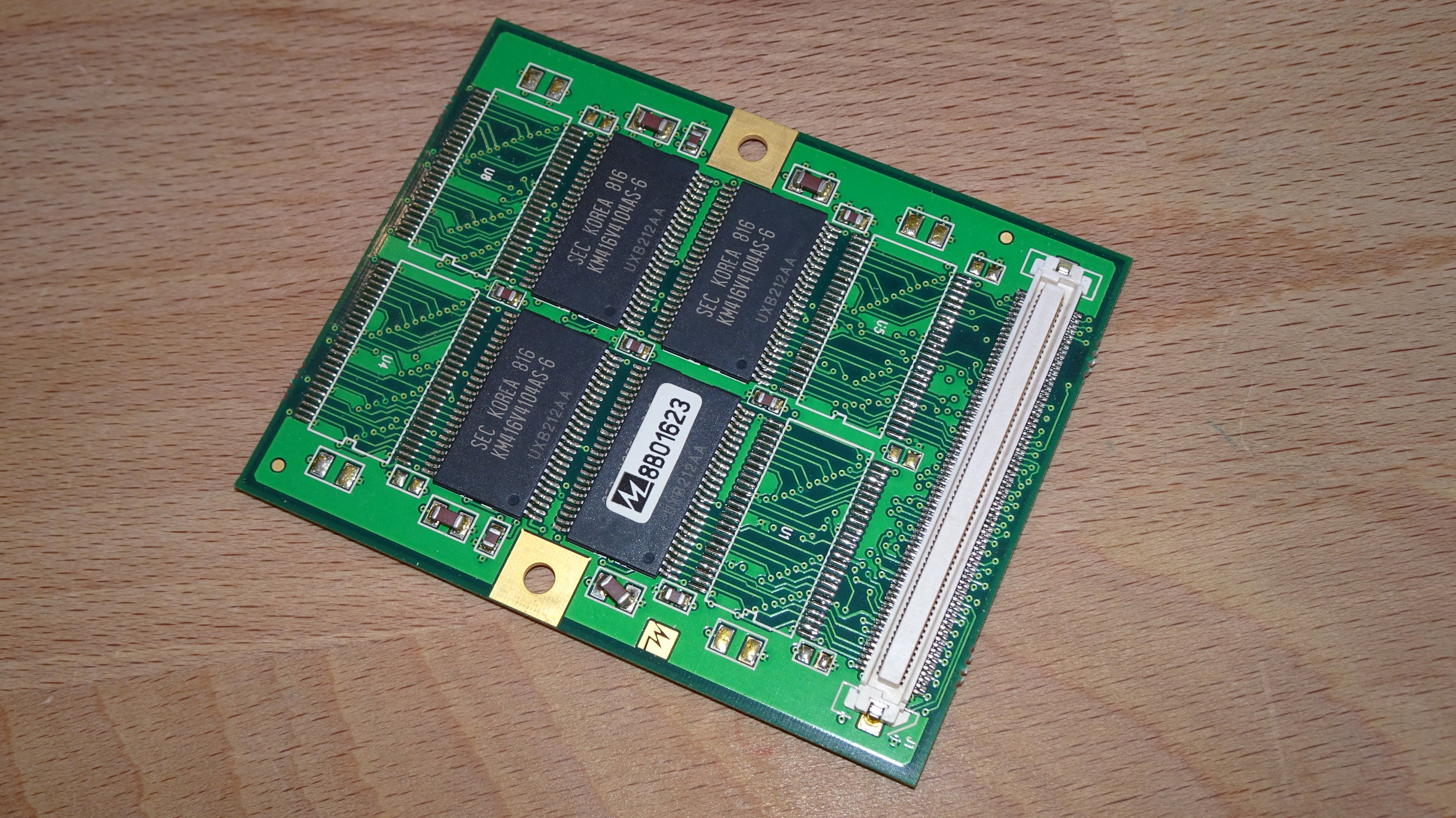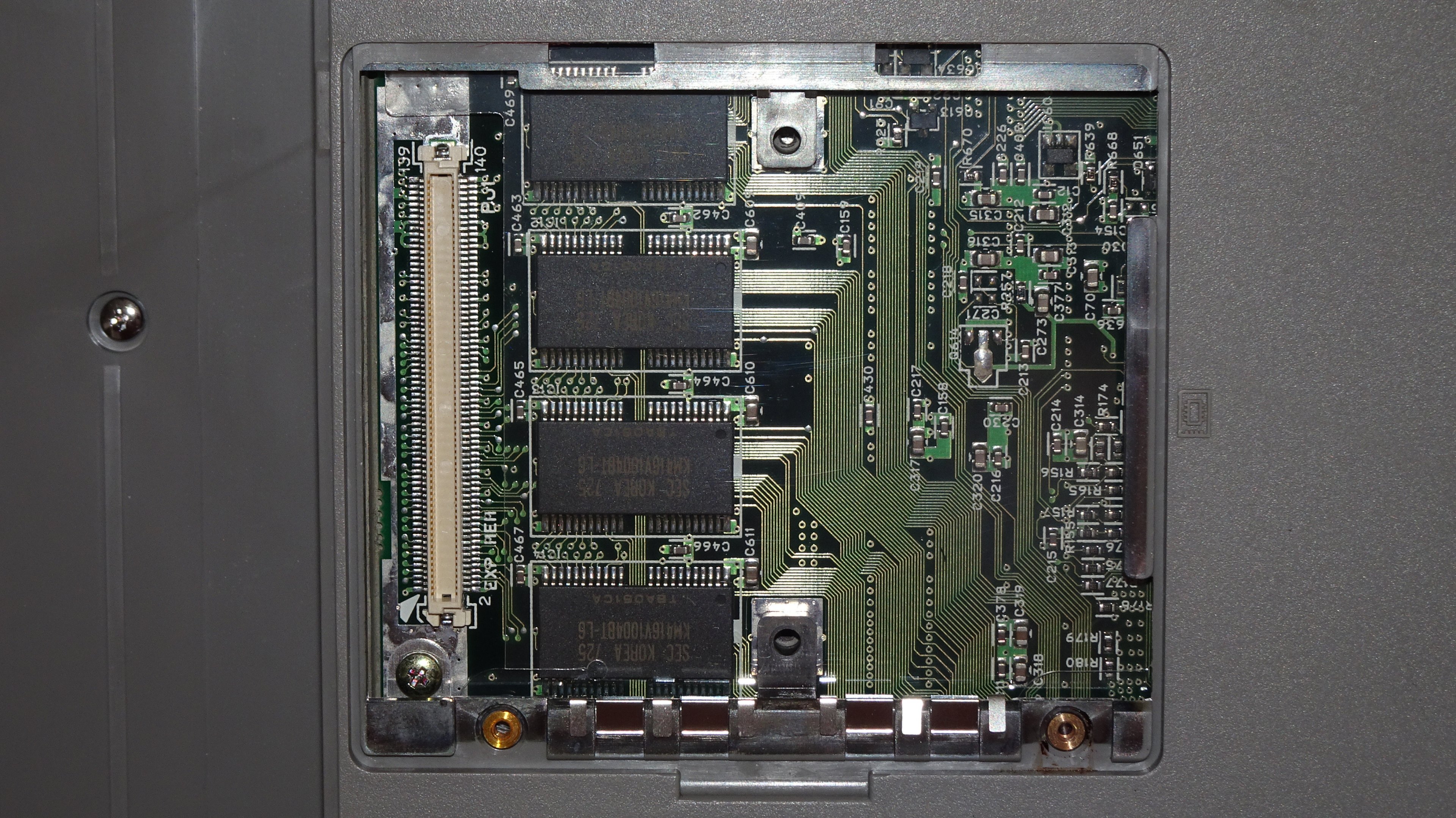 Zuerst mal wollte ich sehen, ob der RAM austauschbar und aufrüstbar ist. Stolze 80MB liegen hinter einer separaten Wartungsklappe mit 2 Schrauben. So ein Speichermodul habe ich noch nie gesehen, ist wohl eine Eigenentwicklung, man beachte auch den Produktionsort ...