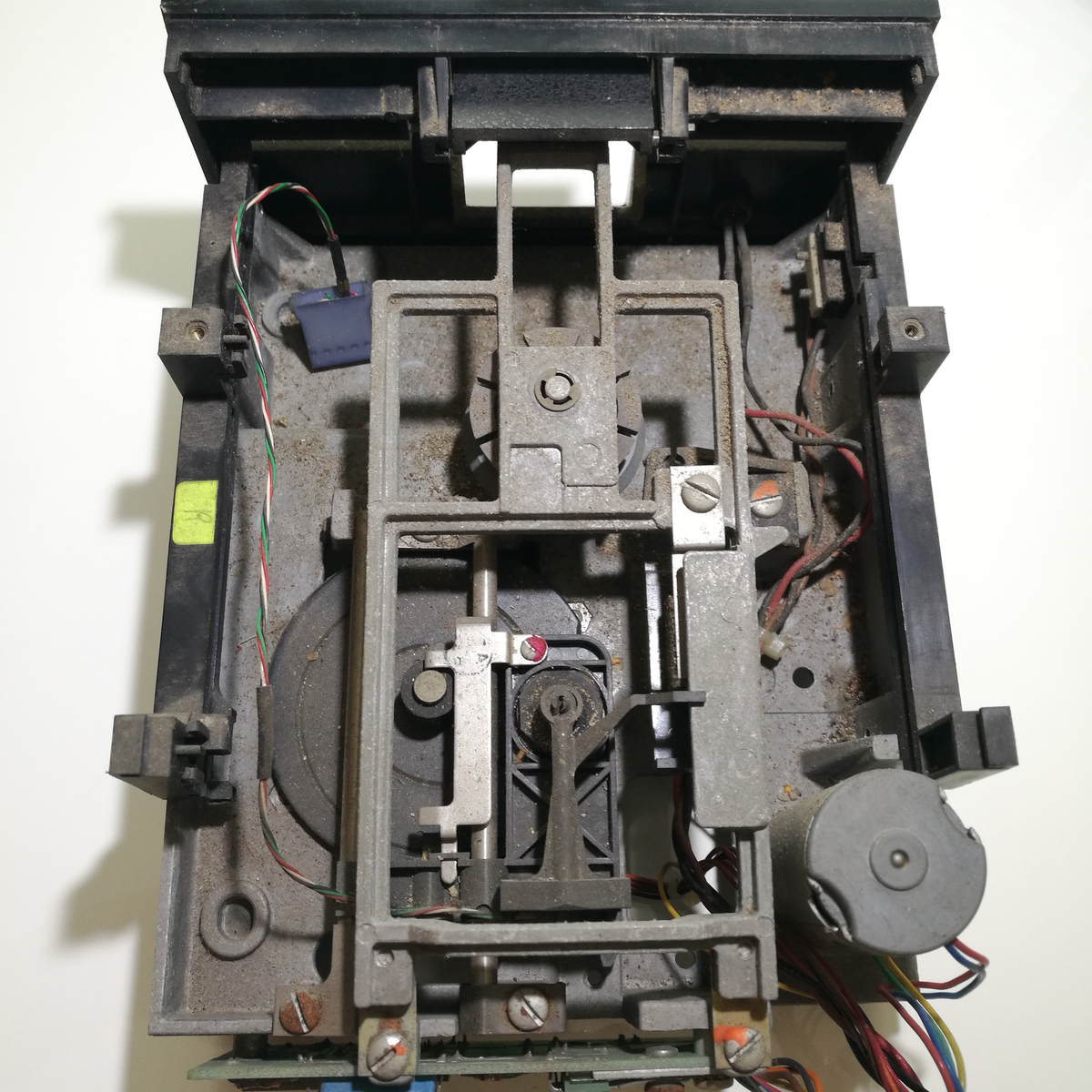 während ich einige der Metallteile meines PET aufbereite habe ich mich mal der Drives angenommen. Die Bilder zeigen Drive 0 (im Urzustand) und Drive 1 (gesäubert). Drive 1 hatte den Vorteil, durch die die Platine des Analogteils geschützt zu sein. (Commodore hat die selbst gebaut, die Drivemechanik sind eigentlich SA-400 mit weggelassenen Features (u. A. kein Track-0-Schalter) Drive 0 lag direkt im Luftzug der über die Jahre eine ordentliche Schicht Dreck abgelagert hat. Auch hier: kaum Korrosion, einfach nur viel viel Dreck.