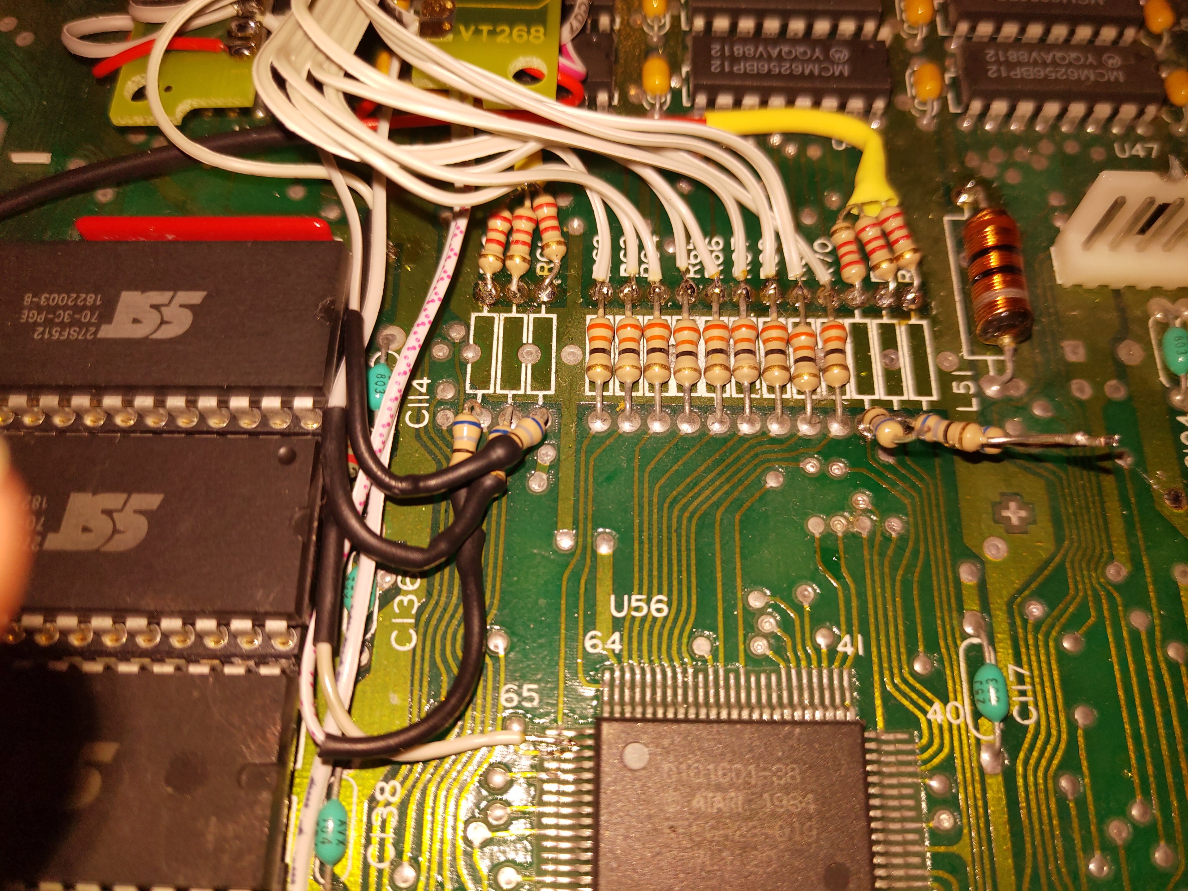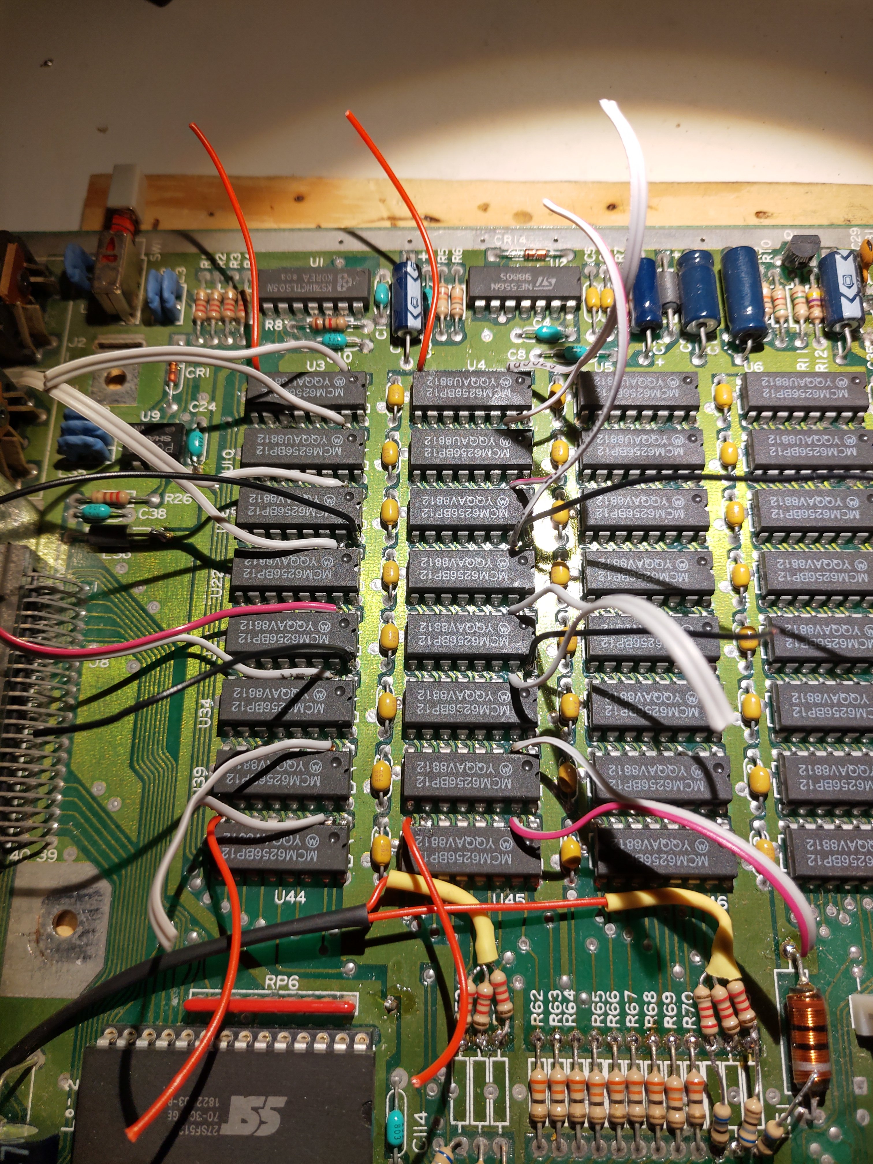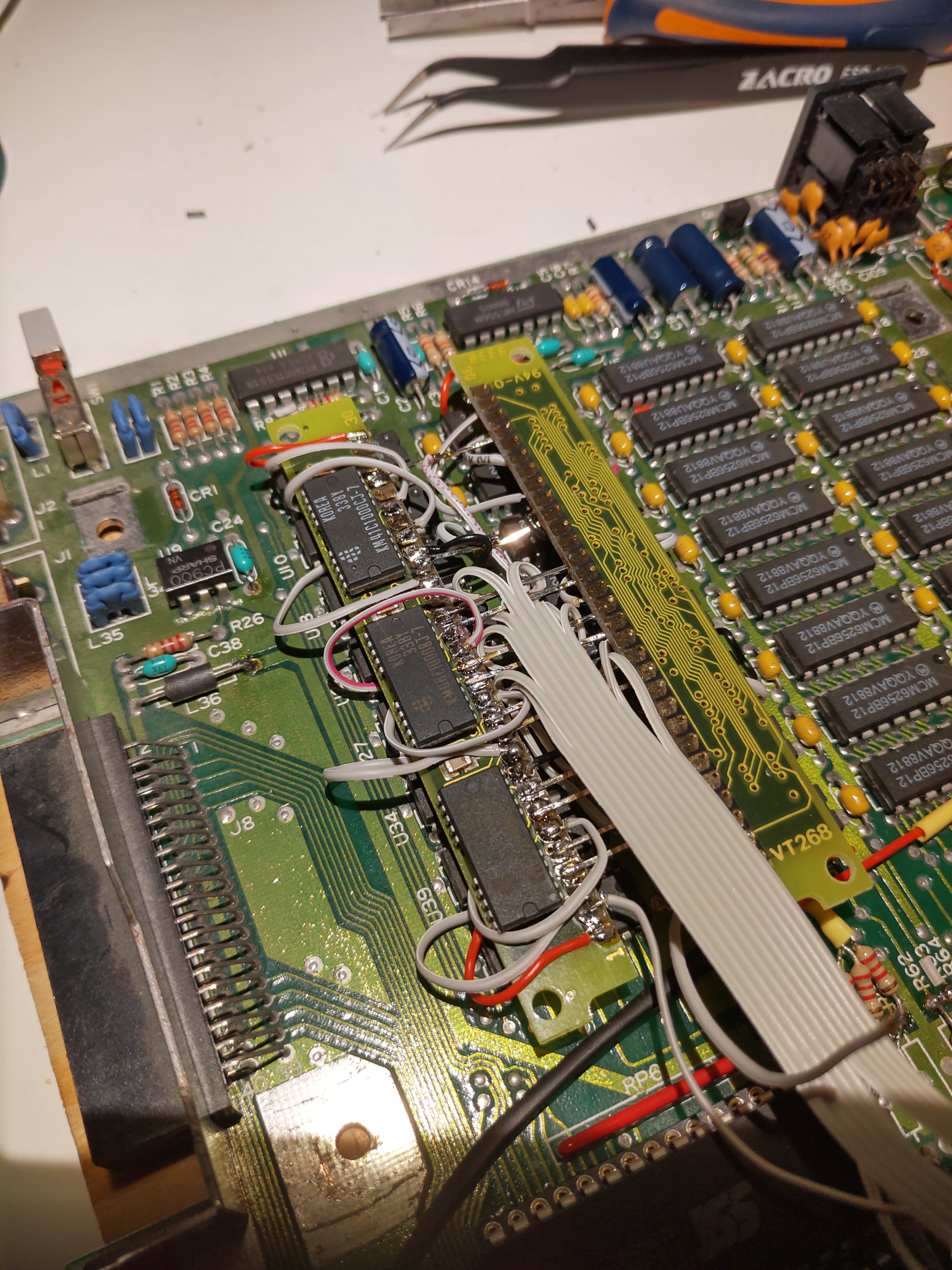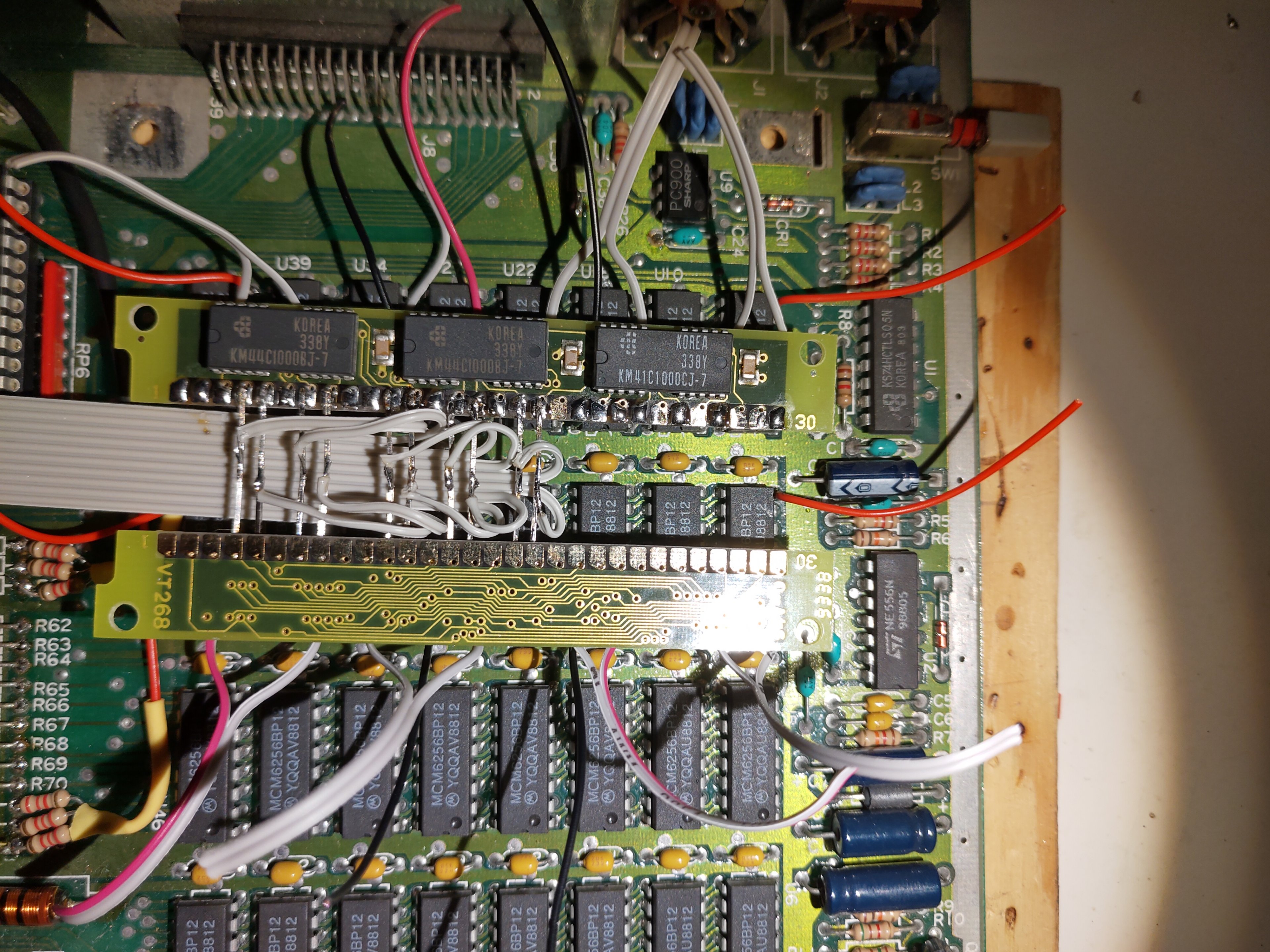 Verbaut waren zwei ROM-Chips mit dem TOS 1.0. Ich habe die zusätzlichen Sockel eingelötet und entsprechende EEPROMs beschrieben, dass ich per Umschalter zwischen TOS 1.2 und TOS 1.4 wechseln kann.