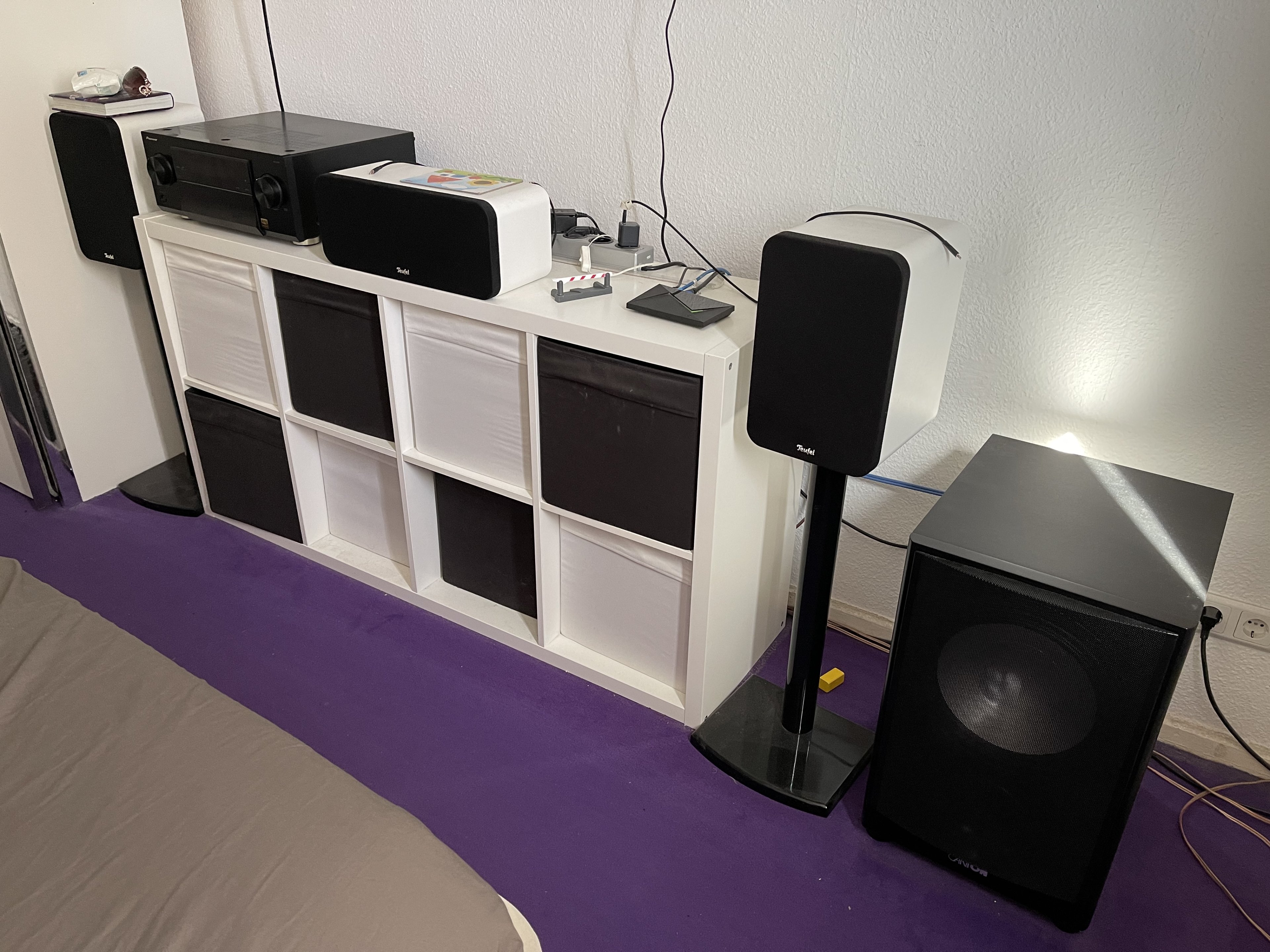In einem "Technikraum, wenn man so will, steht dann noch ein NAS und ein Tiny-PC auf dem ich über Proxmox u.a. einen Roon-Server betreibe. Das ermöglicht es mir, überall wo ich es brauche über WLAN und mit wenig Geldeinsatz zu streamen und den super EQ in Roon für meine KH und Boxen nutzen zu können.