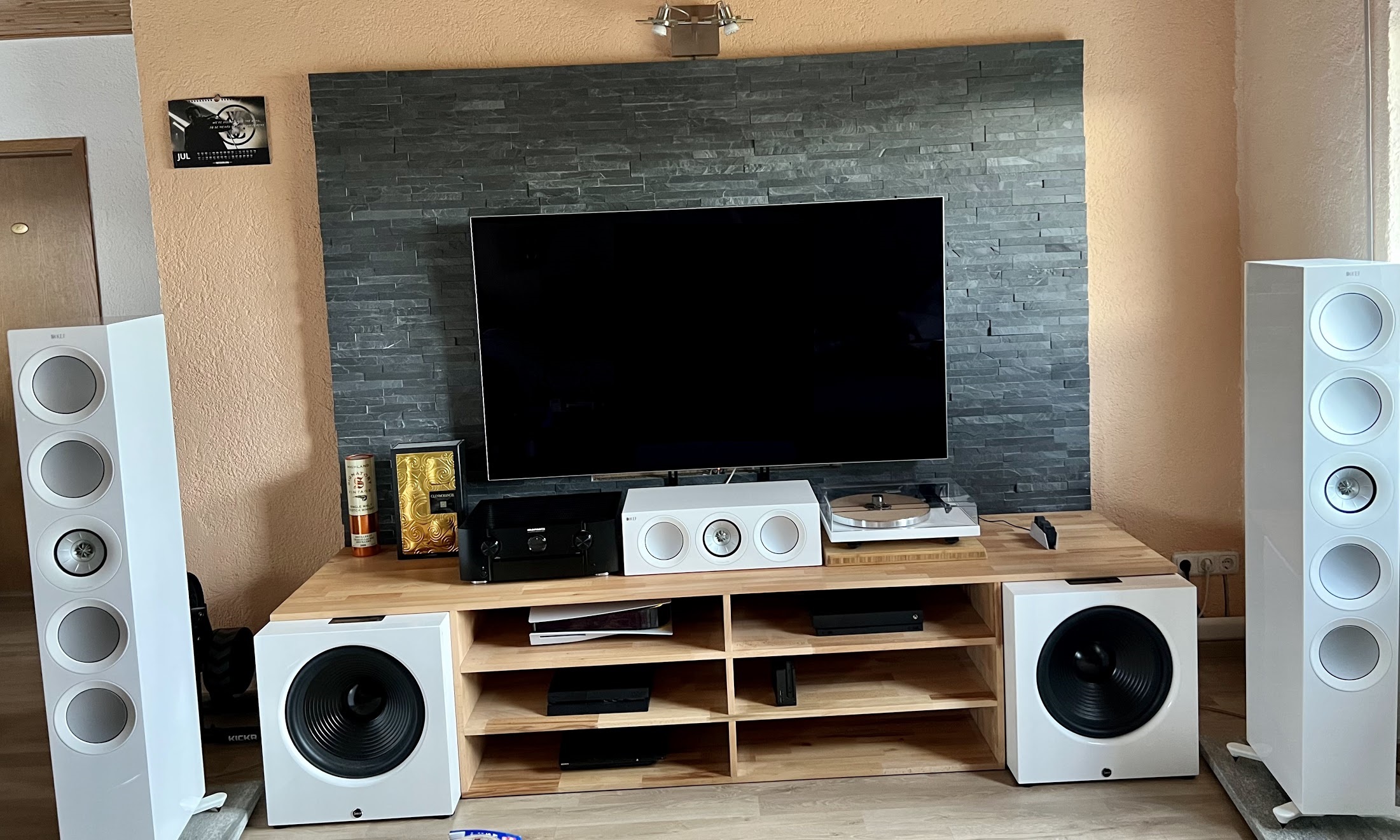 Hat mich viele Wochenenden gekostet... Hier werden aber nur Filme geschaut, kaum Musik gehört. Das ist eine 7.1.2 Anlage bestehend aus einem Teufel 2x Ultima 40 Set mit 4x Ultima 20 und 2x Reflekt Atmos Lautsprechern unter der Decke. Ein Klipsch R120 Subwoofer.