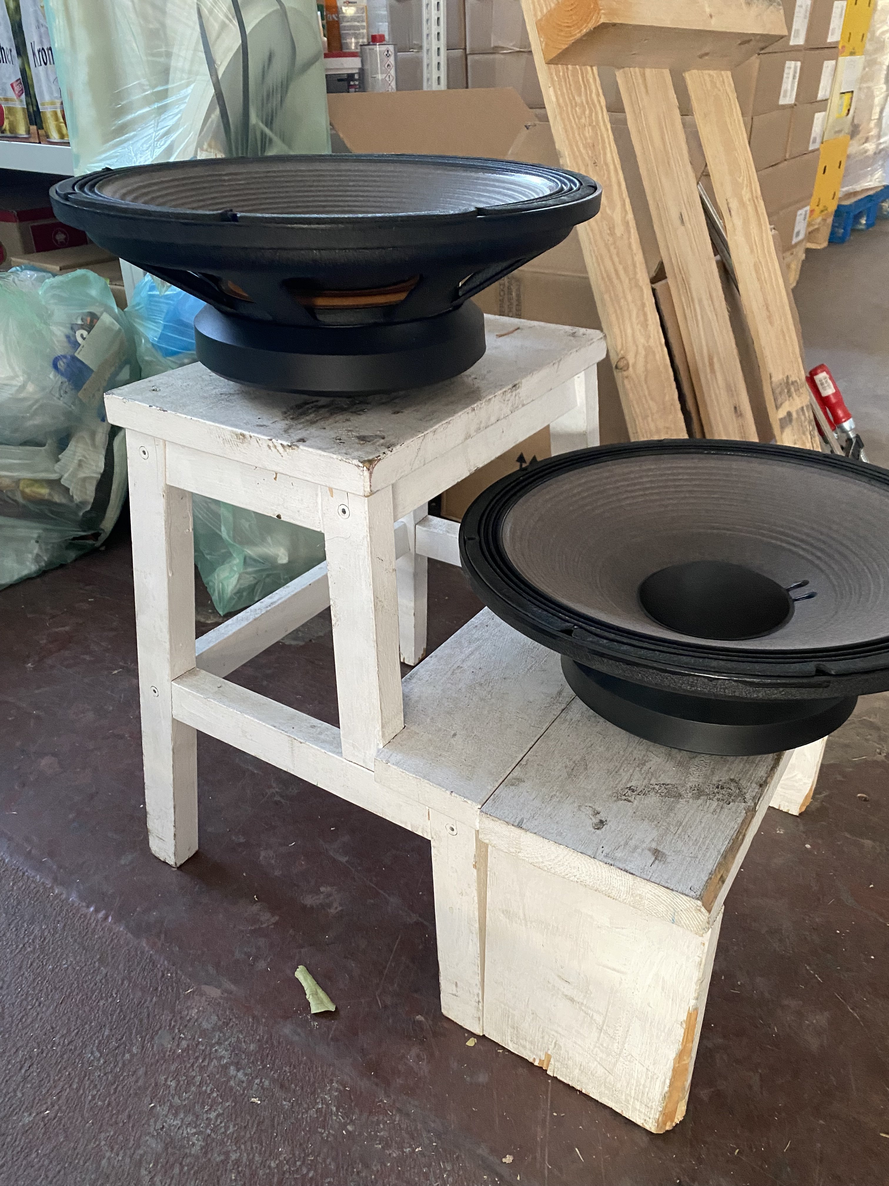 Die Subwoofergehäuse sind ebenfalls aufgemöbelte ausgemusterte Kinolautsprecher, deren Innenvolumen von 225 Litern passt sehr gut zum verbauten 18" Tieftöner. Die Treiberbestückung ist allesamt aus dem oberen Regal. Die meisten Anlagen, die man auf Festivals beim Campen so ertragen muss klingen furchtbar, dem ist bei uns Glücklicherweise nicht so. Messmikrofon und hochwertiger Komponenten sei Dank...