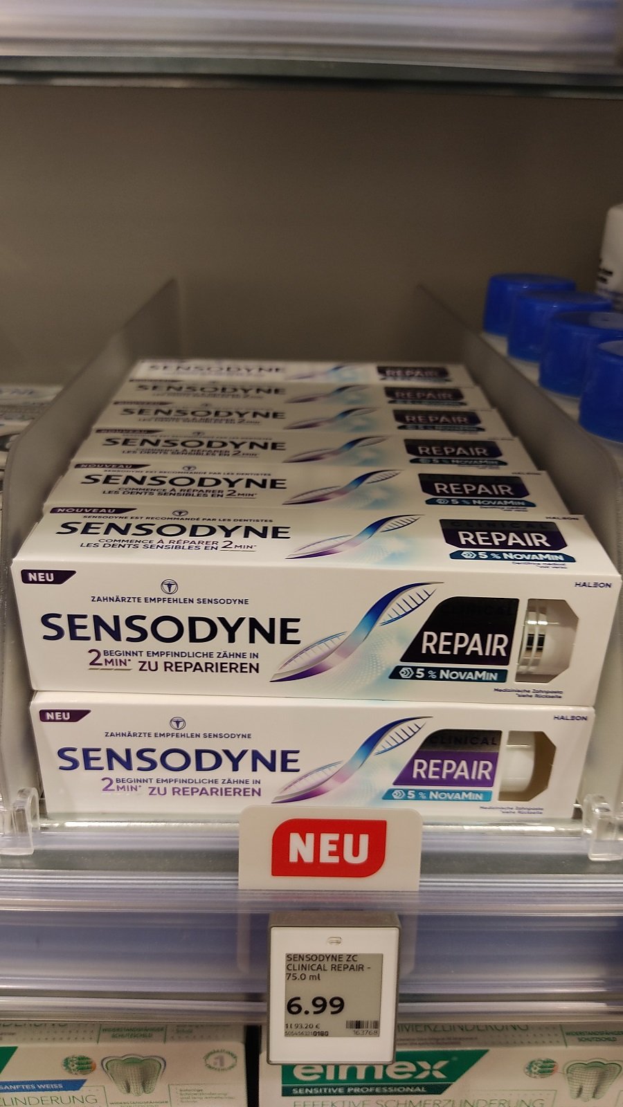 Ich benutze sonst immer die günstigen Eigenmarken-Zahnpasten von Budni und Rossmann, aber habe wegen Reflux und Zähneknirschen Schmelzschäden, so dass solche beworbenen Spezialzahnpasten meine Aufmerksamkeit auf sich lenken.