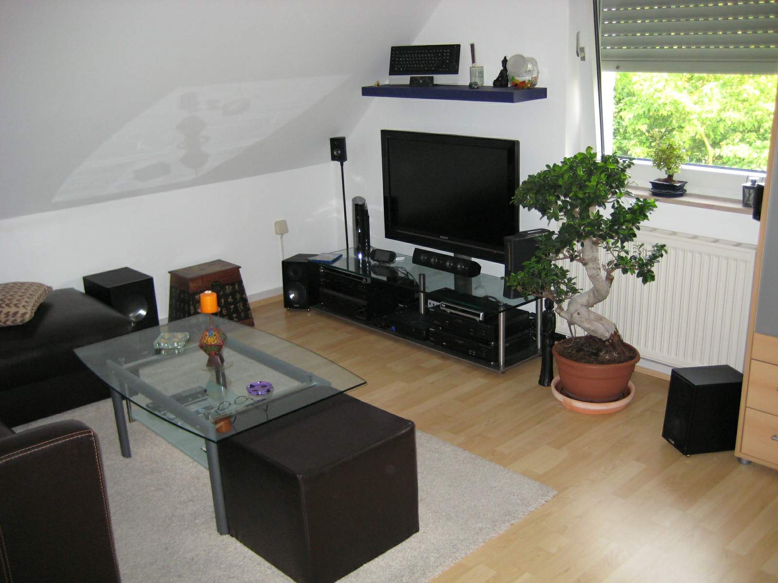 Naja meine Konsolen Ecke wird erst nächsten oder über nächsten Monat kommen. Erstmal am Montag die Schlafcoutch, danach kommt die Diskussion um den TV. Sicher ist entweder 37 Zoll oder 40 Zoll. Die 40 Zöller sind fast genauso teuer wie die 37er. Hab mir heute mal dem Sony KDL 3500 im Kaufhof Bonn ansehen können. Muss sagen irgendwie war das Bild schlecht, lag aber vielleicht auch an der Einspeisung. Da lief das HD Testprogramm von Astra, also Bundesliga, Deluxe Lounge etc und Pilot oder so etwas. Noch bin ich am rätseln, Sony Sony KDL-40D3500, Sony KDL-40V3000 oder doch ein 37er. Sitz abstand: ca 2,5m