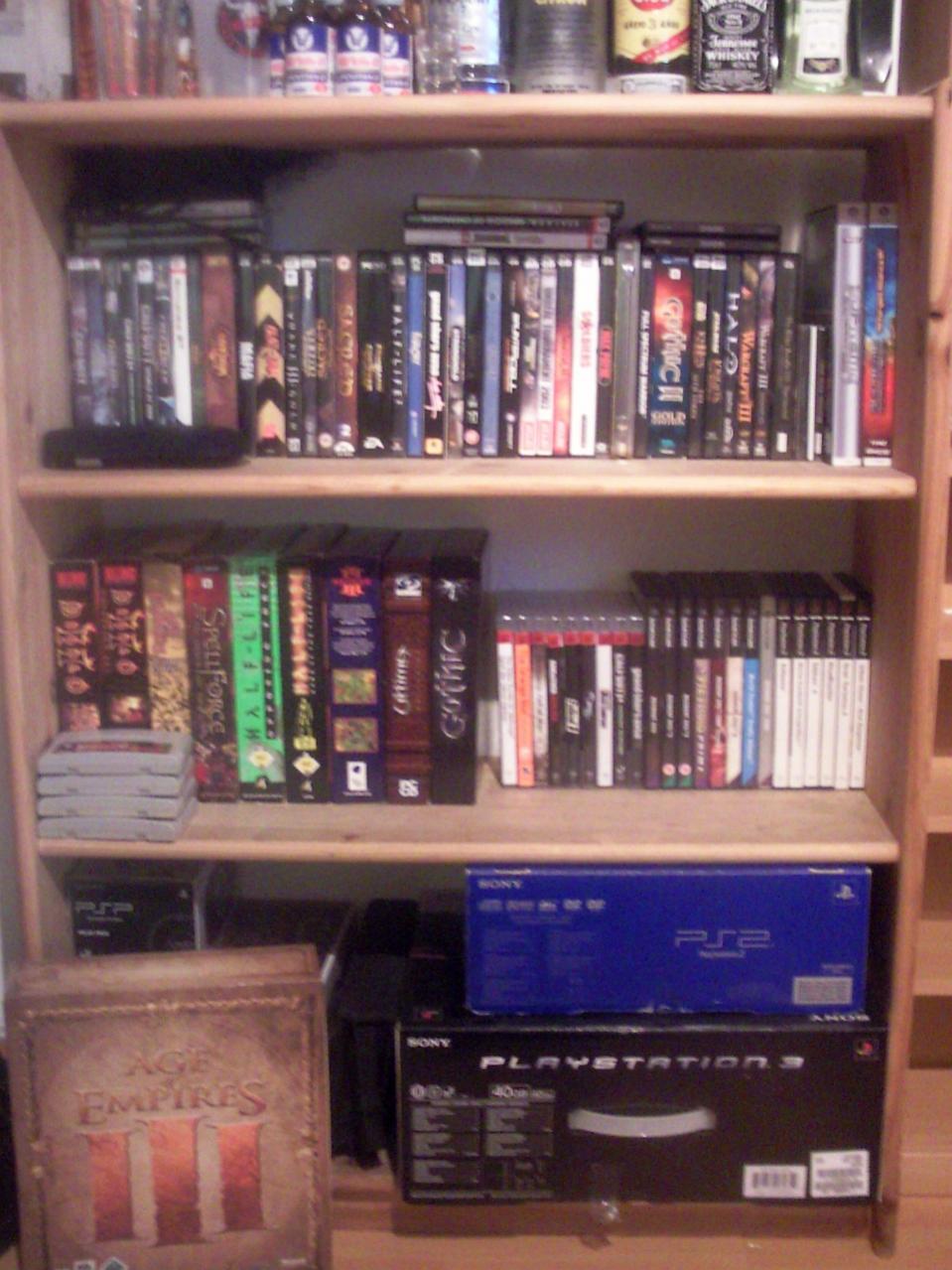 Dann will ich hier auch mal ein bisschen rumprollen . Bildqualität geht leider nicht besser da ich nur ein Handy hab. Der Fernseher ist ein Samsung LE32S7 LCD und wird wahlweise mit einer PS3, PS2, Gamecube oder SNES verkabelt. Zum DVD schauen muss ein stinknormaler HDMI Player von Philips herhalten. Sound läuft (noch ) über eine Uralte Stereo Anlage, die tuts aber noch.