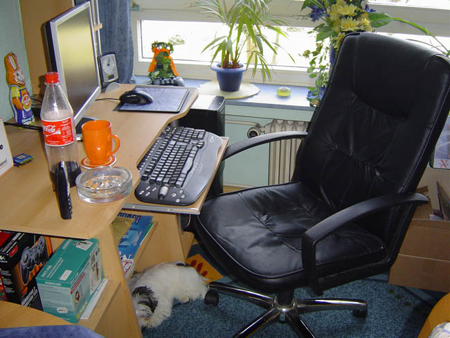 Da ich ein leidenschaftlicher Racegame Zocker bin (N4SU1 und 2,DTM Race Driver 1 und 2, Stock Car und vor allem F1) habe ich mich entschlossen mir ein Lenkrad zu zulegen.Es ist das Momo geworden.Schön und gut.Das gute Teil ist nun unterwegs zu mir.Als ich mir dann aber mal so meine Daddelecke angesehn habe schoss es mir plötzlich so in den Kopf wo packe ich das Lenkrad hin ? Ich habe mal 2 Bilder drangehangen damit ihr euch einen überblick machen könnt wie es bei mir in der PC Ecke so aussieht.Ich möchte eigentlich bequem in meinem Cheff Sessel hocken und dabei das Momo bedienen.Ich habe auch keine Möglichkeit das Lenkrad an meinem Schreibtisch zu monieren das dieser zu klein ist.Desweiteren will ich nicht unbedingt ein kleines Tischchen vor meinen Sessel stellen, denn dann kann ich ja nicht bequem sitzen, sondern muss mich weit nach vorne beugen.Im richtigen Auto klebe ich ja auch nicht mit der Brust vorm Lenkrad !