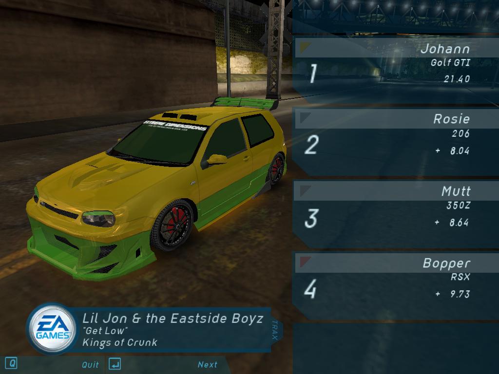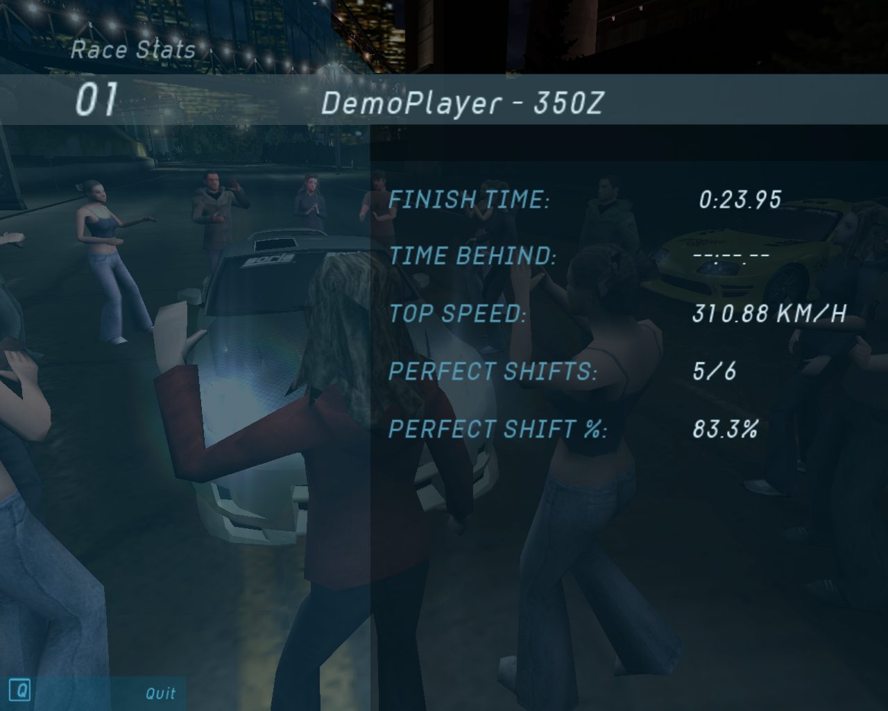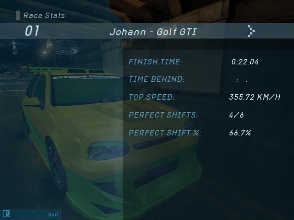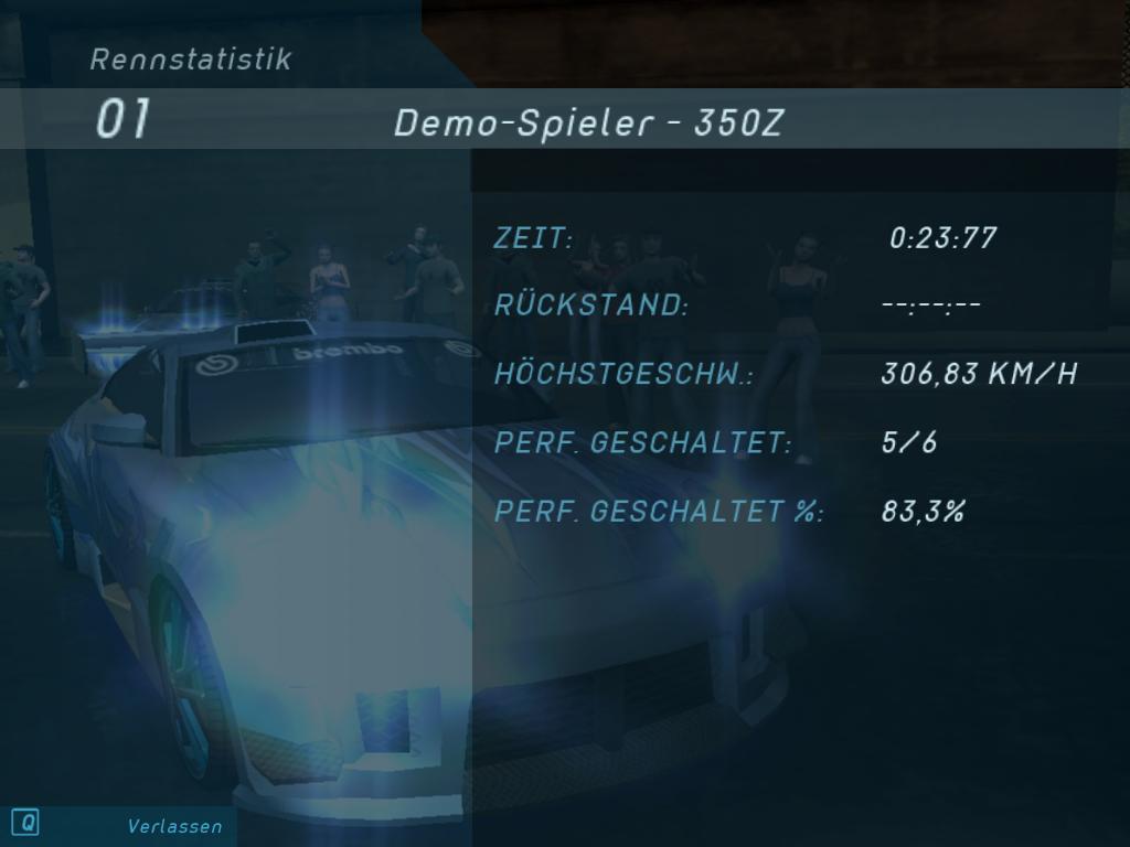 Ich hatte mal bei der Demo durcht das Internet mit den hellblauen Auto 23.06sek gemacht! So eine andere Typ vor mir hatte ab gang 2 NOS gegeben, und ich muss nur halb soviel nos geben wie er, da ich hinten dran gesaugt habe