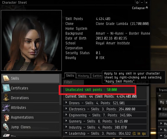 FunnyName schrieb:die nicht zugewiesenen Skillpunkte (wie auch immer das im deutschen Client heißen mag) sehe ich aber auch ohne dass ich die Skillqueue pausieren muss? Wenn ja, sehe ich sie auf keinem meiner beiden Accs. Muss ich wohl mal eine Petition schreiben. Auf meinem Main würde es dann grade noch für Dessis 5 reichen bevor das Addon kommt.