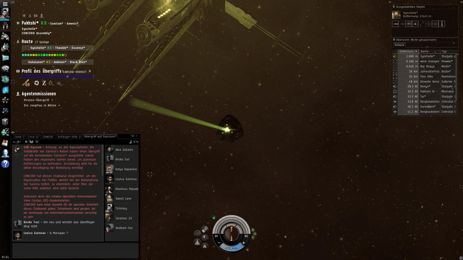 In dem System (o. Consti) ist gerade eine Incursion aktiv. Kurz gesagt Sanctum wird angegriffen von den Sanshas. In diesen Systemen empfehle ich Dir nicht alleine (wenn alleine, dann mind. mit nem T3 und vernünftige Skills) in die Belts zu fliegen oder AFK am Gate zu stehen. Durch die Inc sind die NPC massiv härter und böser (Scrambling, mehr Tank, mehr DPS... bspw.). Folgenden Beitrag möchte ich Dir ans Herz legen für eine kurze Erklärung. KLICK MICH! Ich selbst hab mich damit zu wenig beschäftigt als 0.0 Bewohner. Aber es wird hier sicher welche geben, welche Incursions fliegen um dem Endgegner das, neben den T2 BPOs, wohl begehrteste Blueprint (Copy) zu erhalten welches in EVE herumgeistert, das Revenant BPC (Faction Supercarrier) oder halt nur um Kohle zu machen und das lohnt sich.