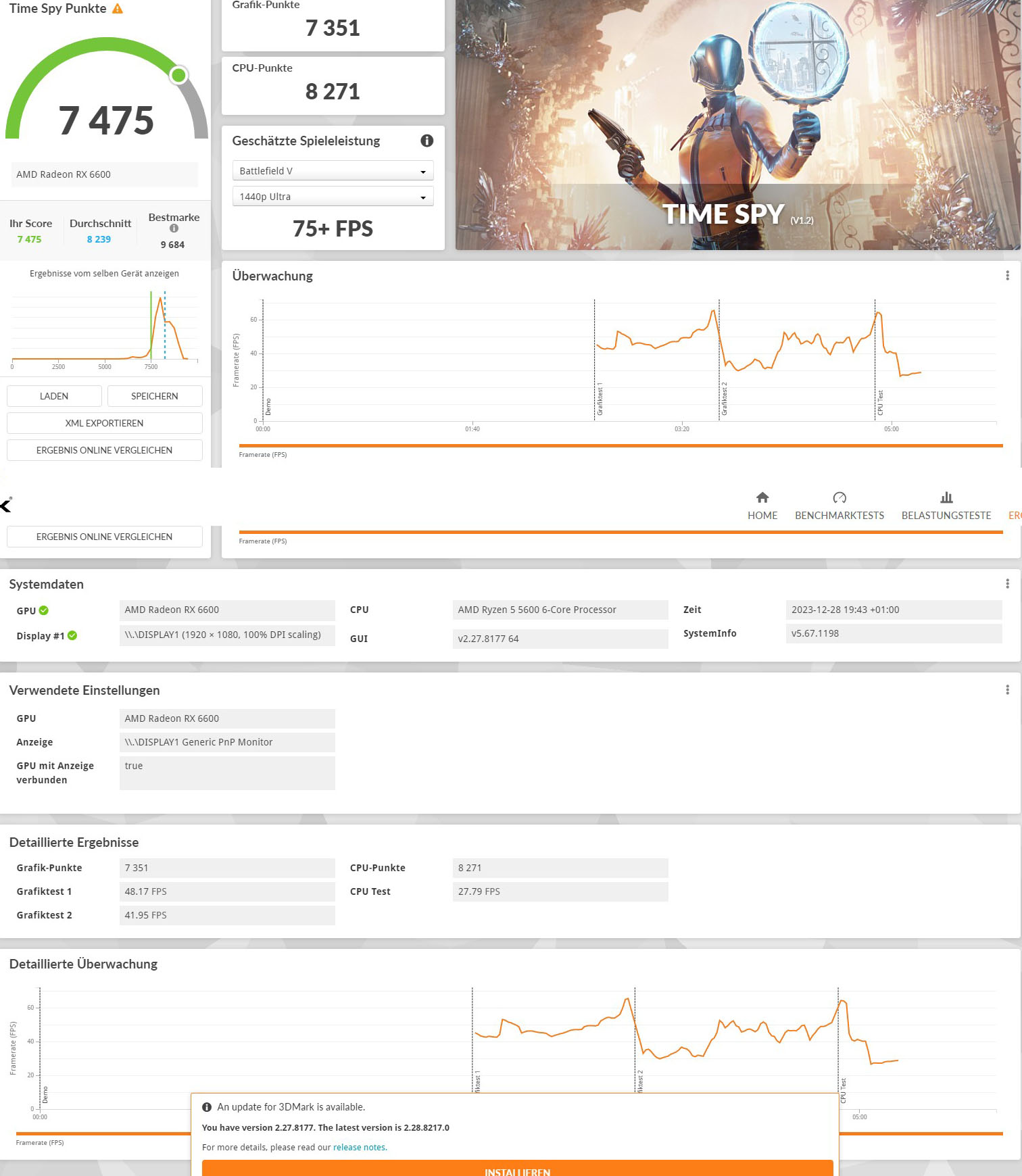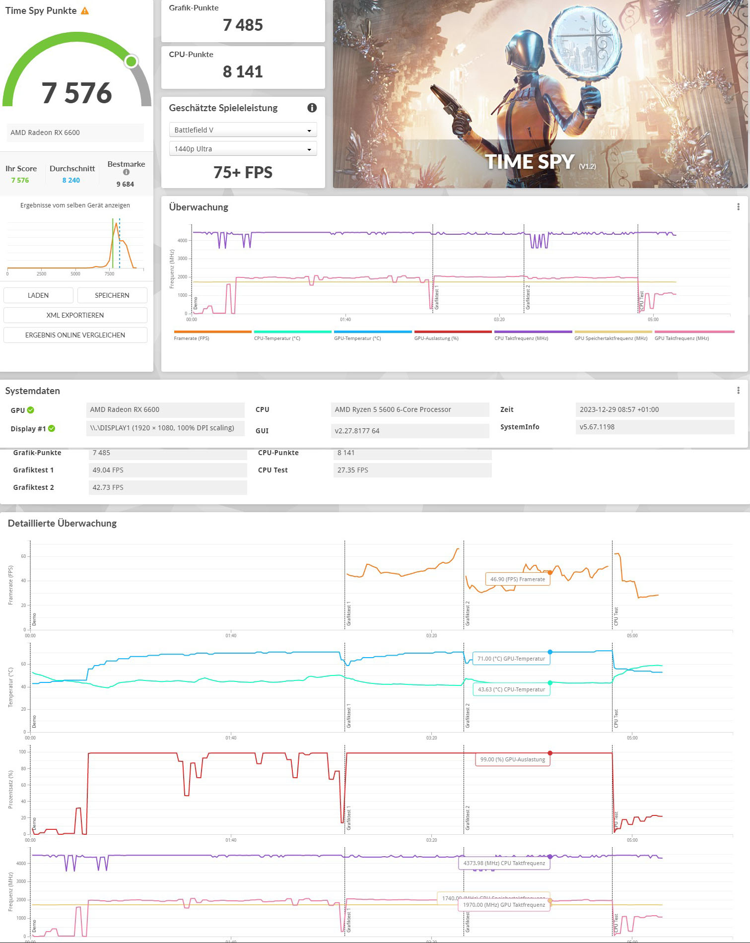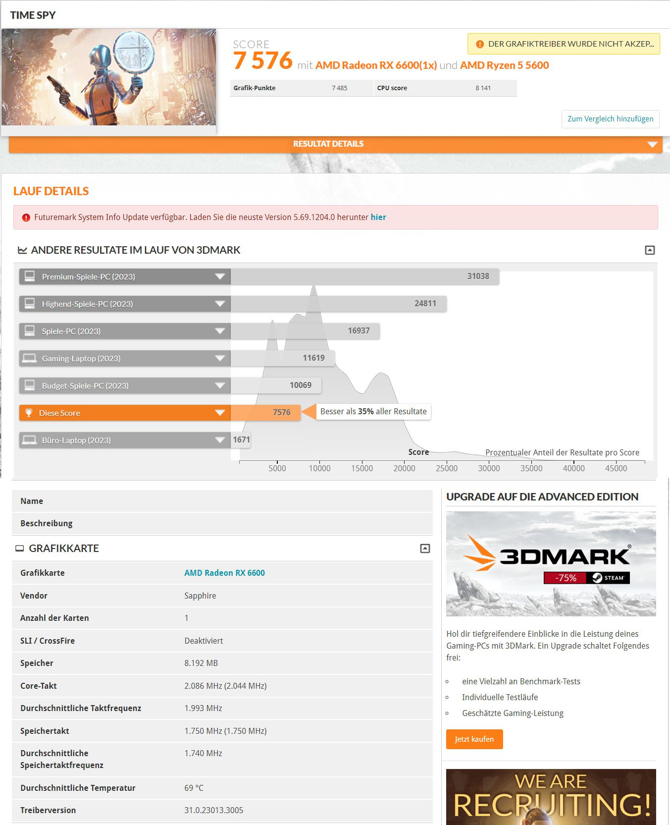Ich habe mir bei Kleinanzeigen diese Grafikkarte (Sapphire Pulse Radeon RX 6600) gekauft, jetzt habe ein Benchmark mit 3D Mark gemacht, von den Punkten her weicht sie etwas ab, kann mir einer von Euch sagen, ob das normal ist oder ob die Grafikkarte eventuell einen Defekt hat.
