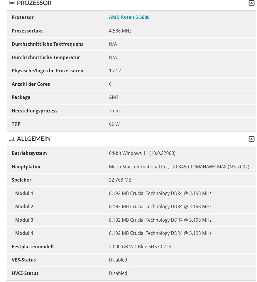 Ach so als Motherboard habe ich ein MSI B450 Tomahawk Max (MS-7C02)