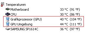 hm, also graka-temps von meiiner 6800 GT zeigt er nit an. liegt wohl daran, dass es bei nvidia nicht "offiziell" im treiber ist, wie bei ATI. hm, schade. aber festplattentemps sind auch interessant.