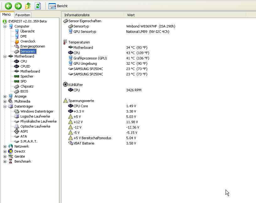 Everest zeigt mir an das ich zwei Samsung Sp 2504c Platten anstatt die Samsung + die Western Digital 1600 Sata im Rechner habe.