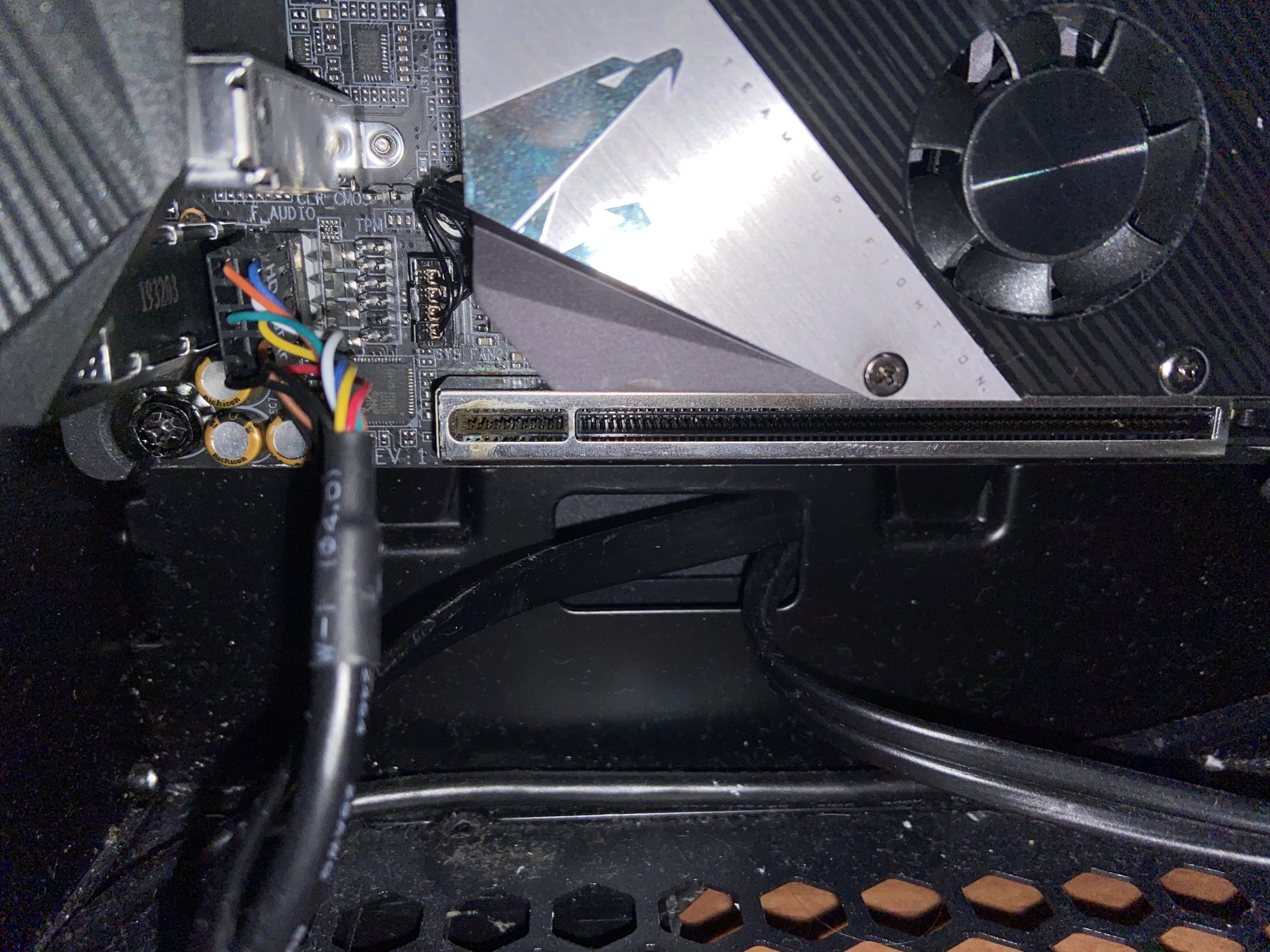 wollte heute meinen PC starten und hab leider kein Bild bekommen hab darauf meinen PC auseinander gebaut und in meinen PCI Slot (Gigabyte Autos Master X570 ITX ) vorne leicht bräunliche Stellen gesehen, hab dann bei meinen Riser Kabel vorne den Dreck runter gewischt und dieser rach sehr verbrannt.