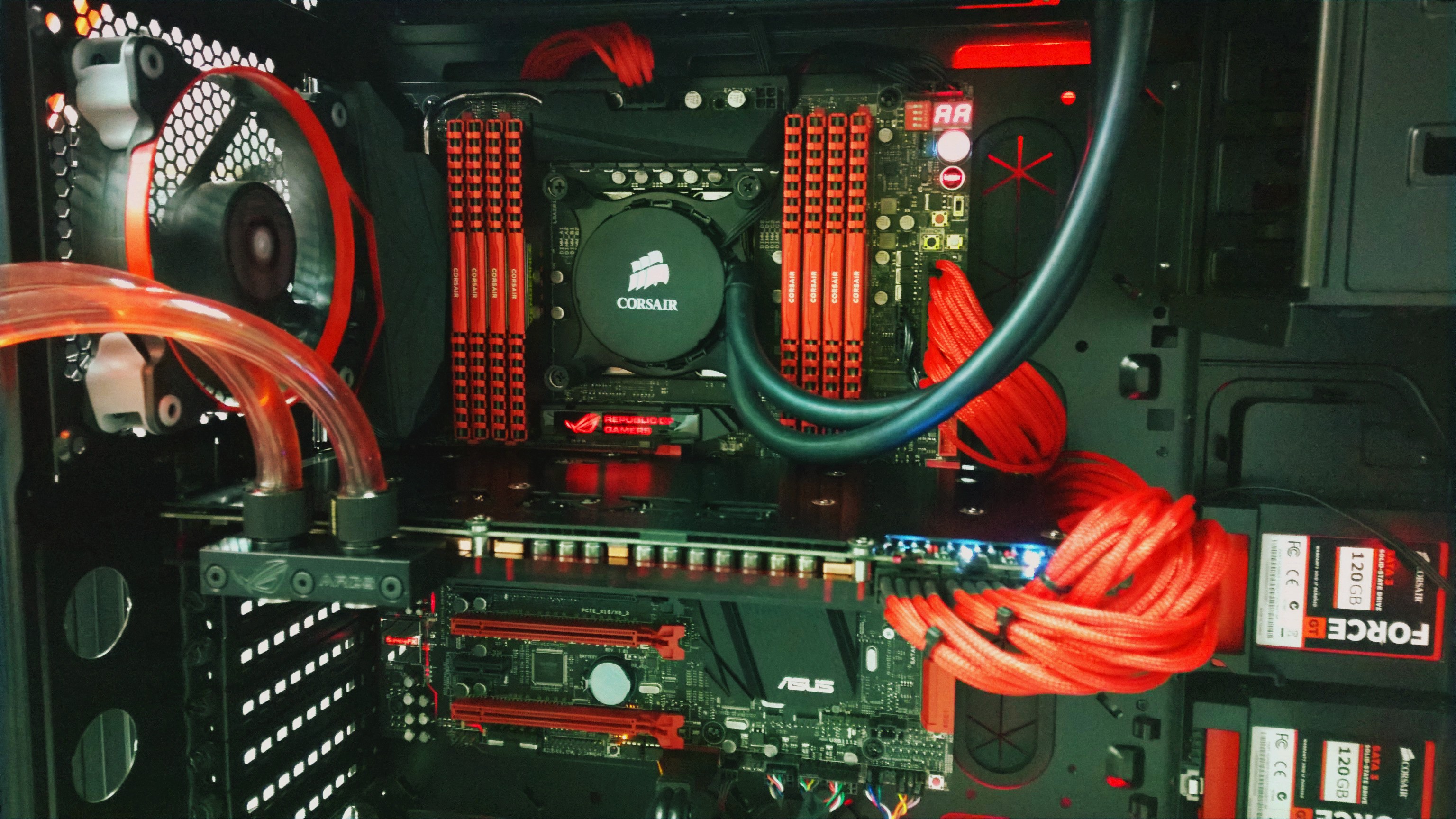 Mainboard , Prozessoren , Speicher Module mit ARGB , Netzteil und 3 x Saphire R9 x290 Vapor-X eventuell wenn sie Draufpassen auch vier im Crossfire .