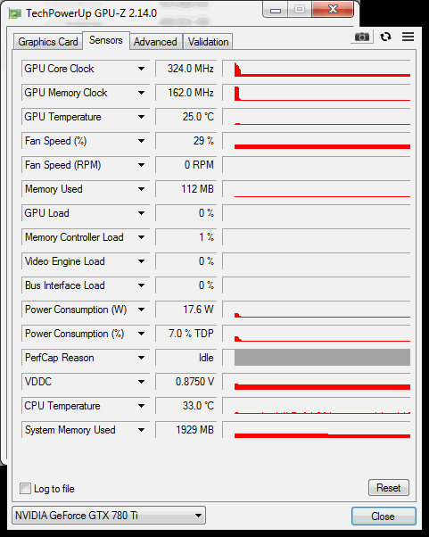 Die restliche Hardware meines Systems findet ihr in meinem Sysprofile (siehe Link in meiner Signatur; alle Daten bis auf die Angabe meiner alten Grafikkarte sind dort aktuell). Getestet habe ich das Ganze bislang erst auf Windows 7 Ultimate 64-bit. Nach meinem letzten Versuch mit der GeForce-Version 337.88 habe ich ein paar Screenshots in GPU-Z gemacht (siehe Anhänge). Laut meiner Kontrollen dort war die Grafikkarte auch immer kühl (das erste Mal 29 °C).