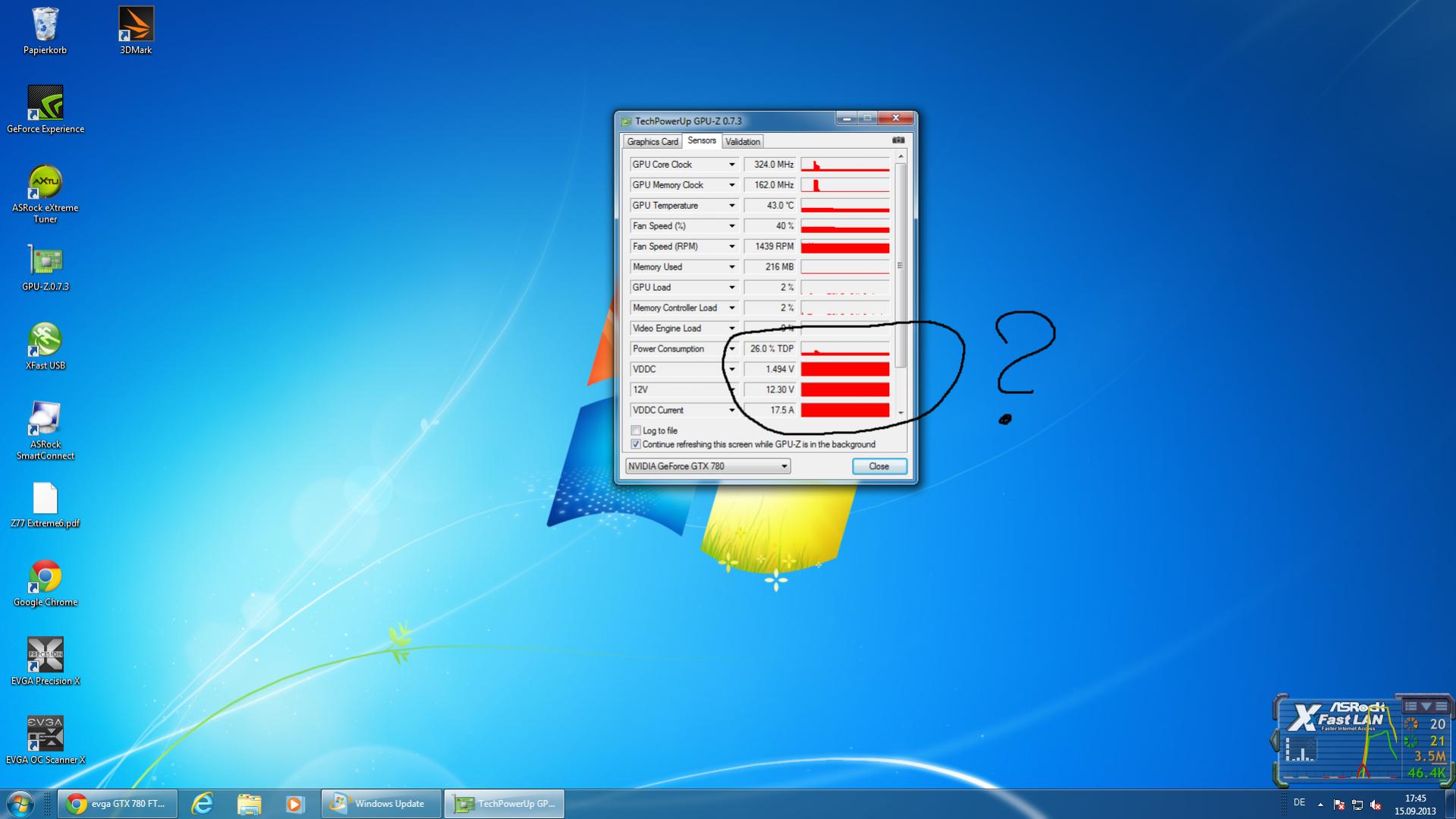 evga GTX 780 FTW taktet in Spielen nicht hoch und bleibt bei 324 Mhz