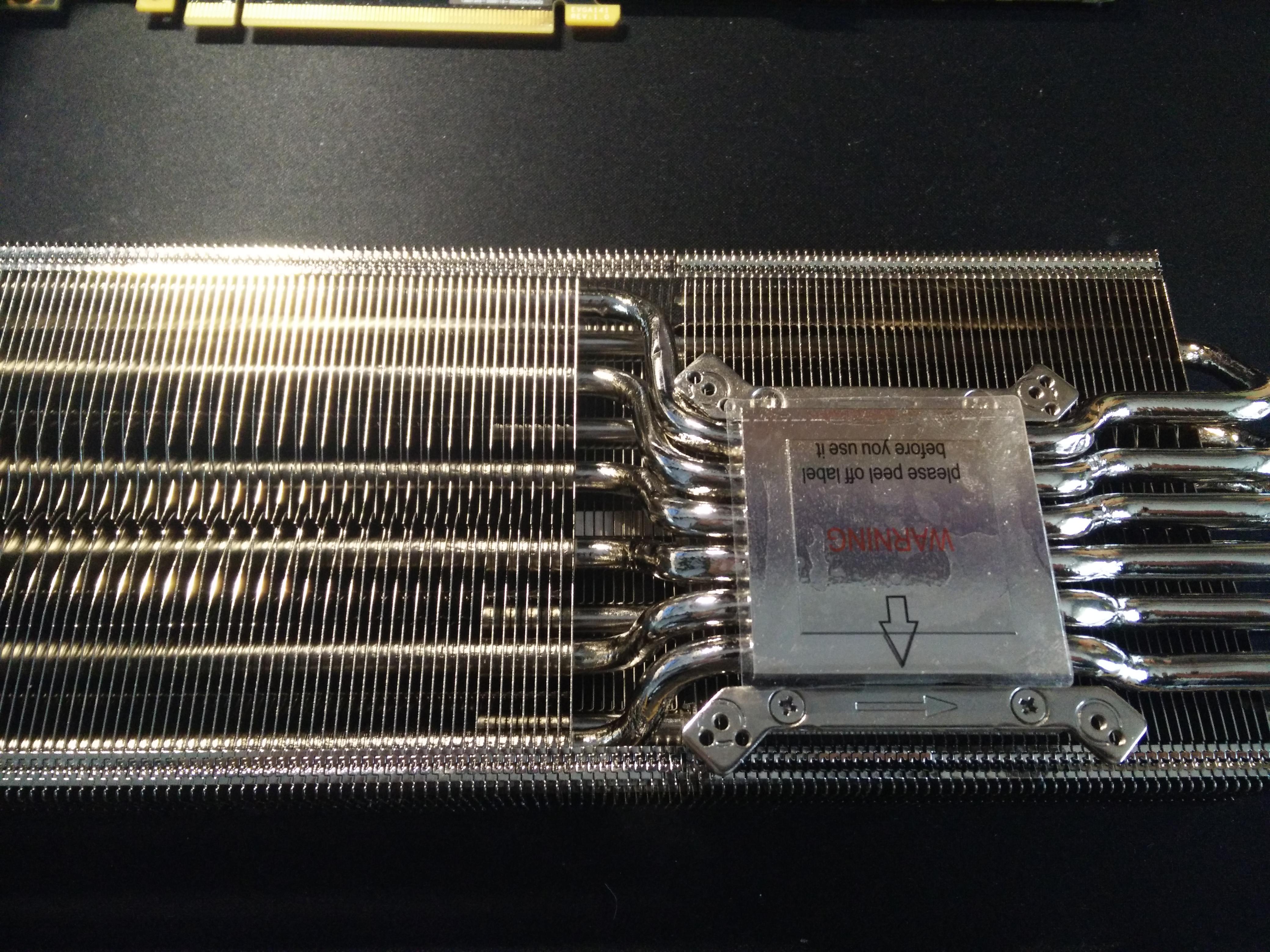 Beim Auftragen der Wärmeleitpaste könnt ihr euch für eine Methode entscheiden. Es reicht die einfache Erbsenmethode. Für bessere Temperaturen empfehle ich jedoch, die WLP mit einem kleinen Spatel oder mit einer Kreditkarte zu verstreichen. Danach werden die Halterungen an dem Kühlkörper installiert (gemäß der Anleitung) und die Abstandshalter werden angeschraubt.Nun noch die Schutzfolie von der Kühlfläche abziehen. Ist dieser Schritt erfolgt kann der Kühlkörper mit der Grafikkarte verbunden werden. Dabei werden von hinten die 4 Schrauben per Kreuzmethode festgeschraubt damit ein gleichmäßiger Anpressdruck entsteht und sich die WLP gut verteilen kann. Beachtet: die unterschiedlichen Montagearten von AMD und NVIDIA gemäß der beiliegenden Beschreibung.