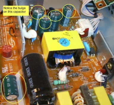 Wie in dem einem englischsprachigen Link schon erwähnt, sind die Kondensatoren des Netzteils der Grund des defekts.