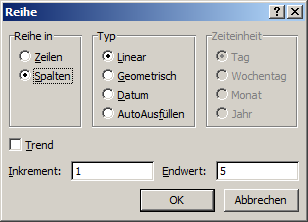 Ich sag Excel, dass ich gern alle Werte zwischen -5 und +5 in einer Tabellen hätte, mit dem Abstand 1,0.