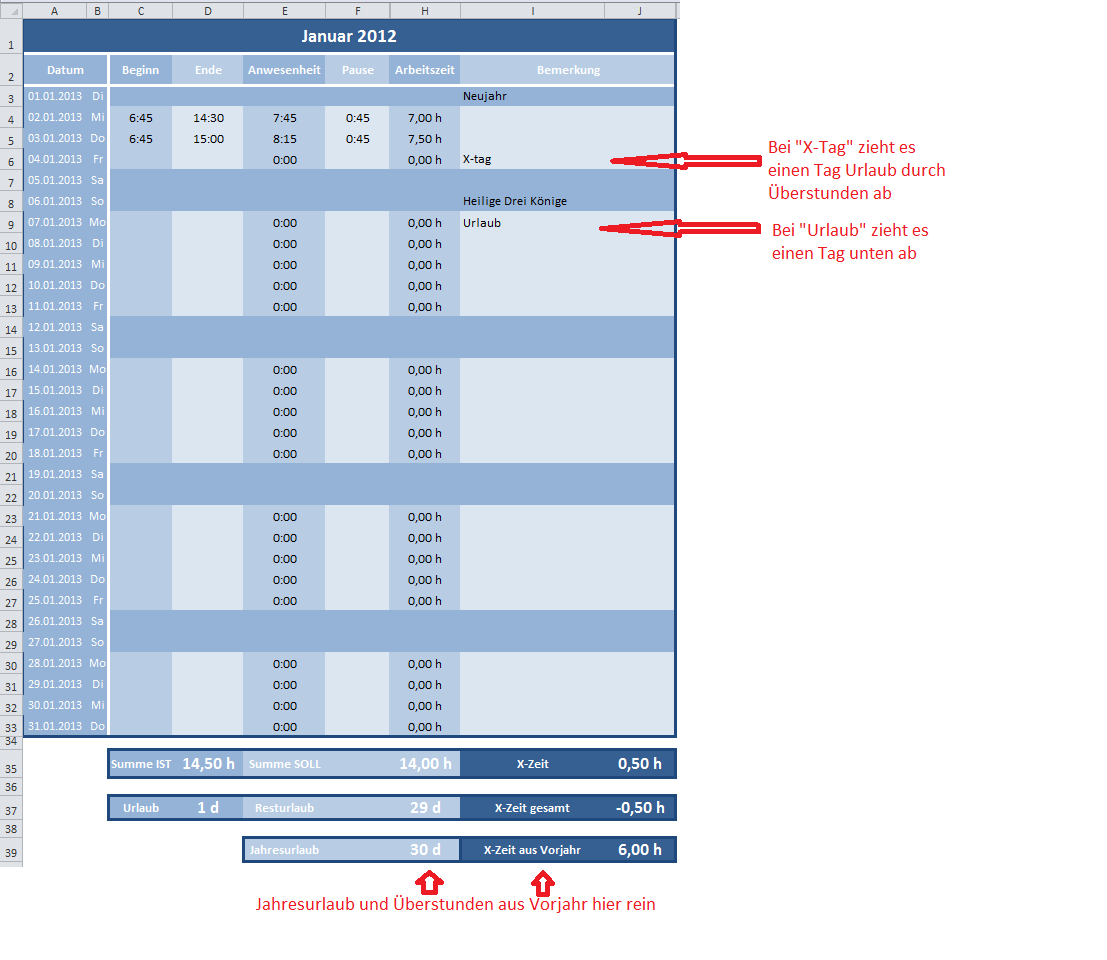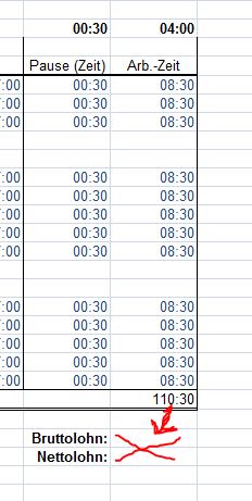 Ich möchte natürlich meine Zeiten zusammenrechnen, das klappt auch schon ganz gut allerdings weiß ich absolut nicht wie ich die Pause in der Endsumme abziehen lassen kann.