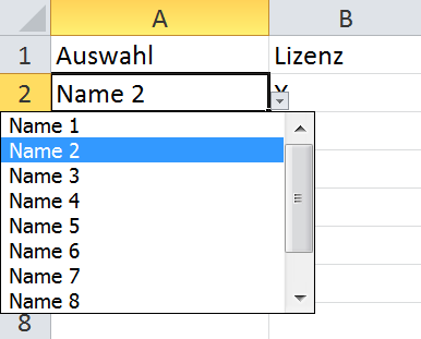 Im Formular selbst, ist neben der Zelle mit dem DropDown ein SVerweis, welcher Prüft, ob der Name eine Lizenz besitzt. Falls ja, setzt er den Inhalt der Lizenzspalte (ein X).